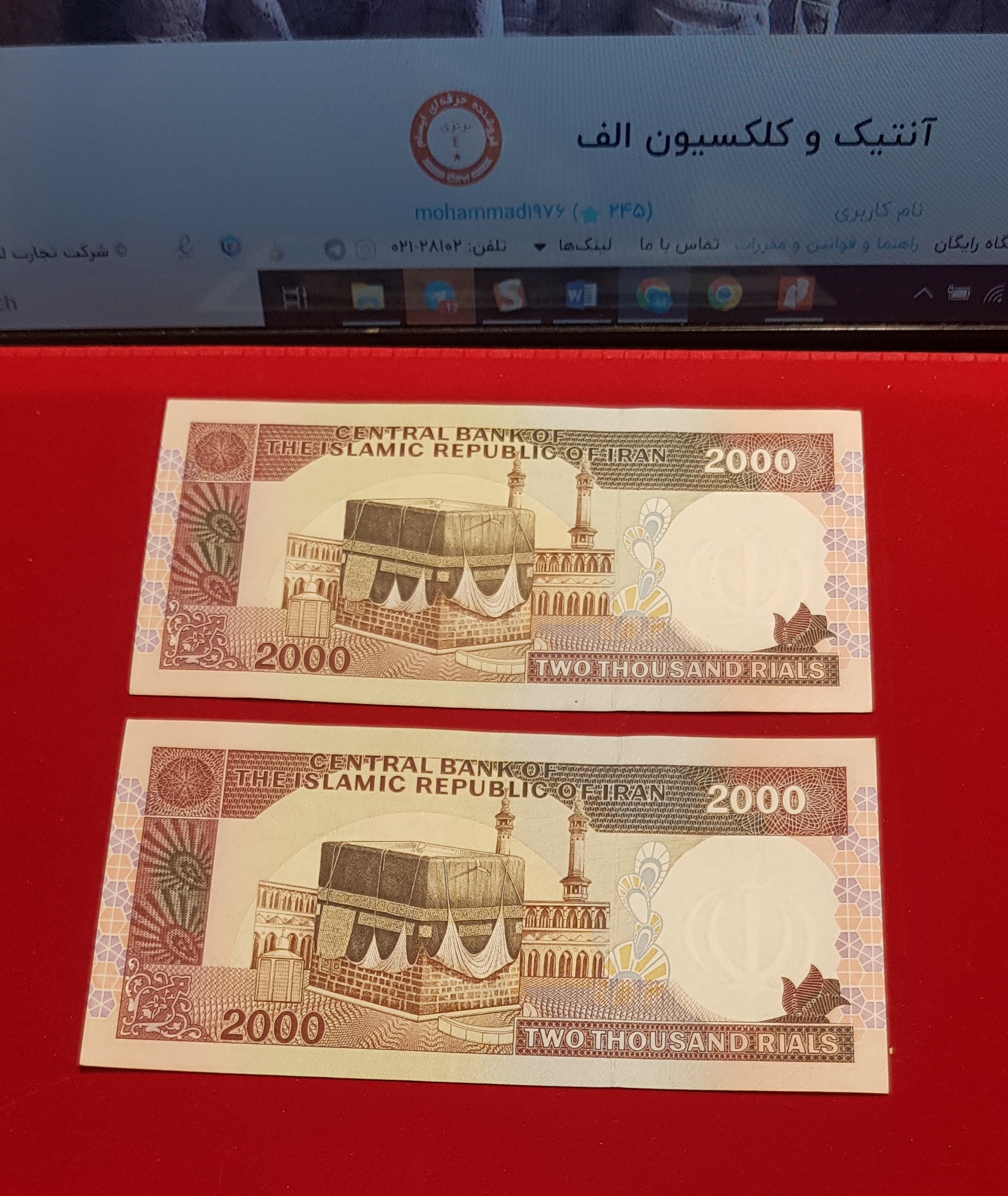 جفت 2000 ریالی تظاهراتی، امضا ایروانی قاسمی، فیلیگران الله شماره ریز، طبق تصویر