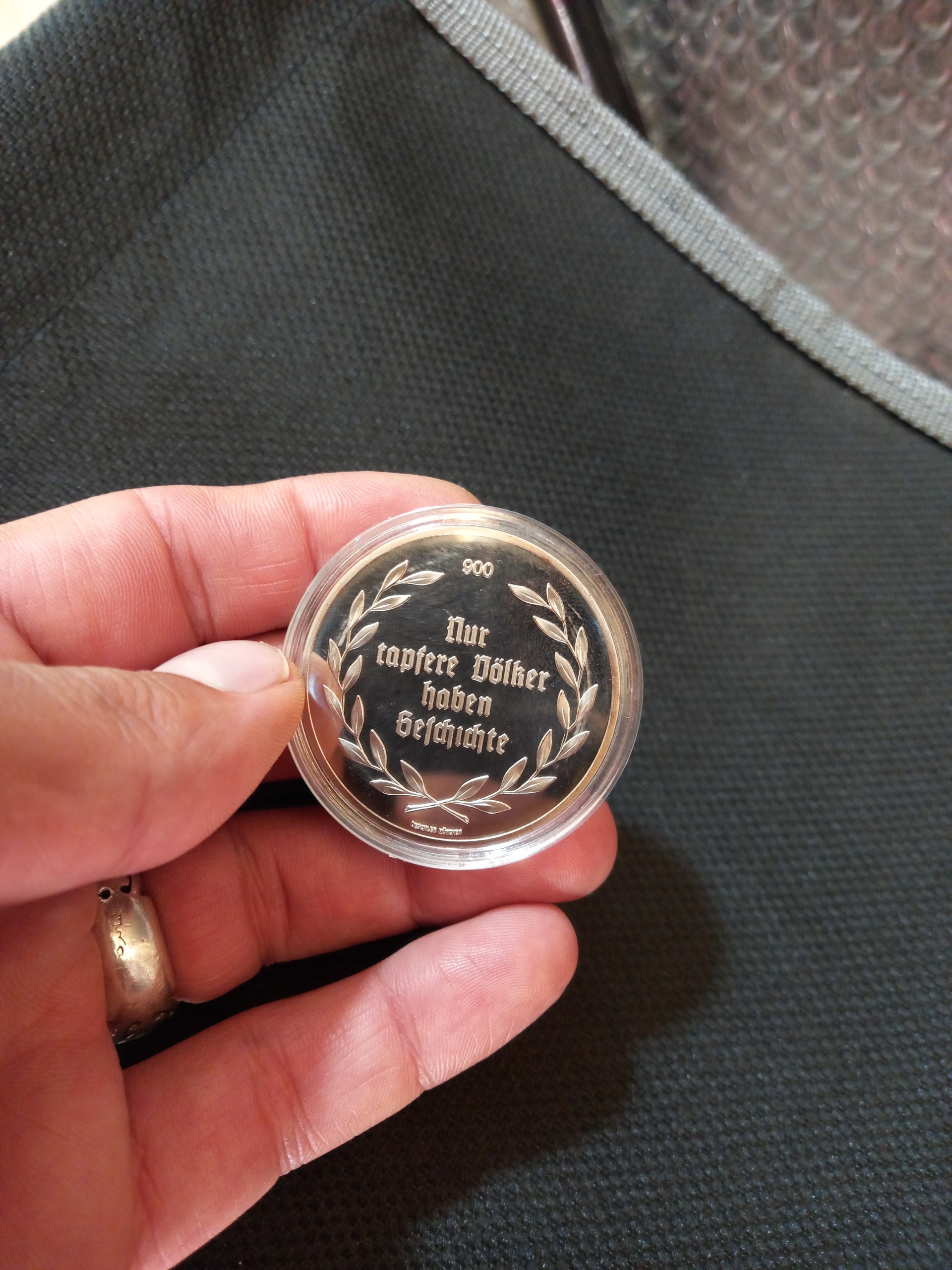 سکه کلکسیونی آلمان باطراحی بینظیر ودرجه1 جنس استیل ابکاری نقره ای به همراه قاب محافظ