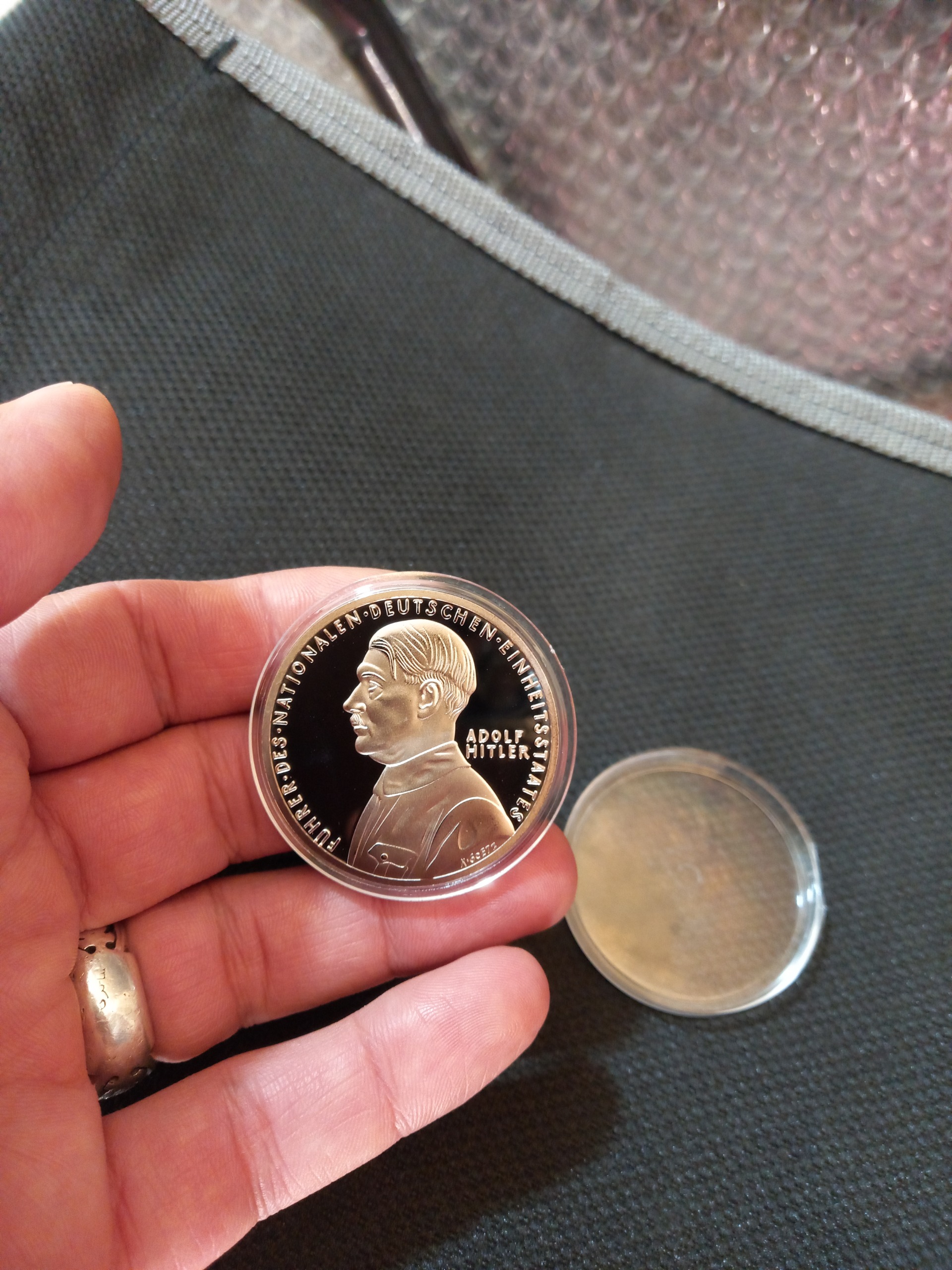سکه کلکسیونی هیتلر باطراحی بینظیر جنس استیل ابکاری نقره ای به همراه قاب محافظ هدیه ماندگار