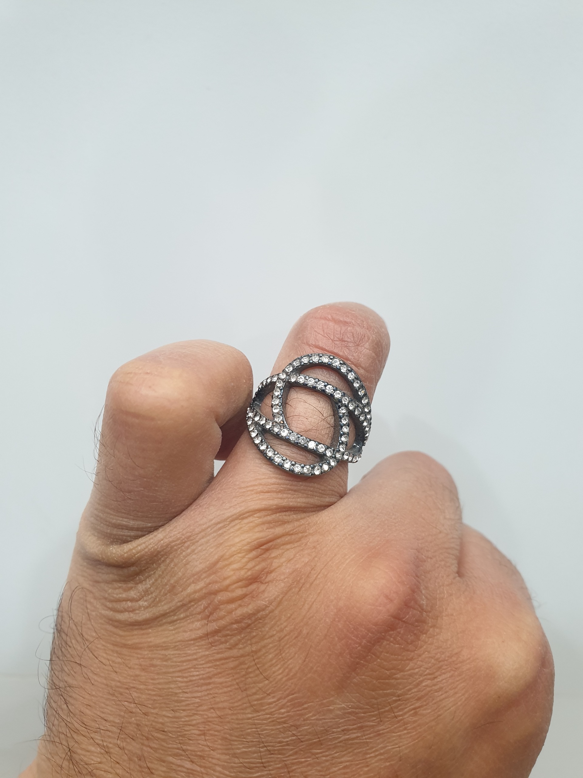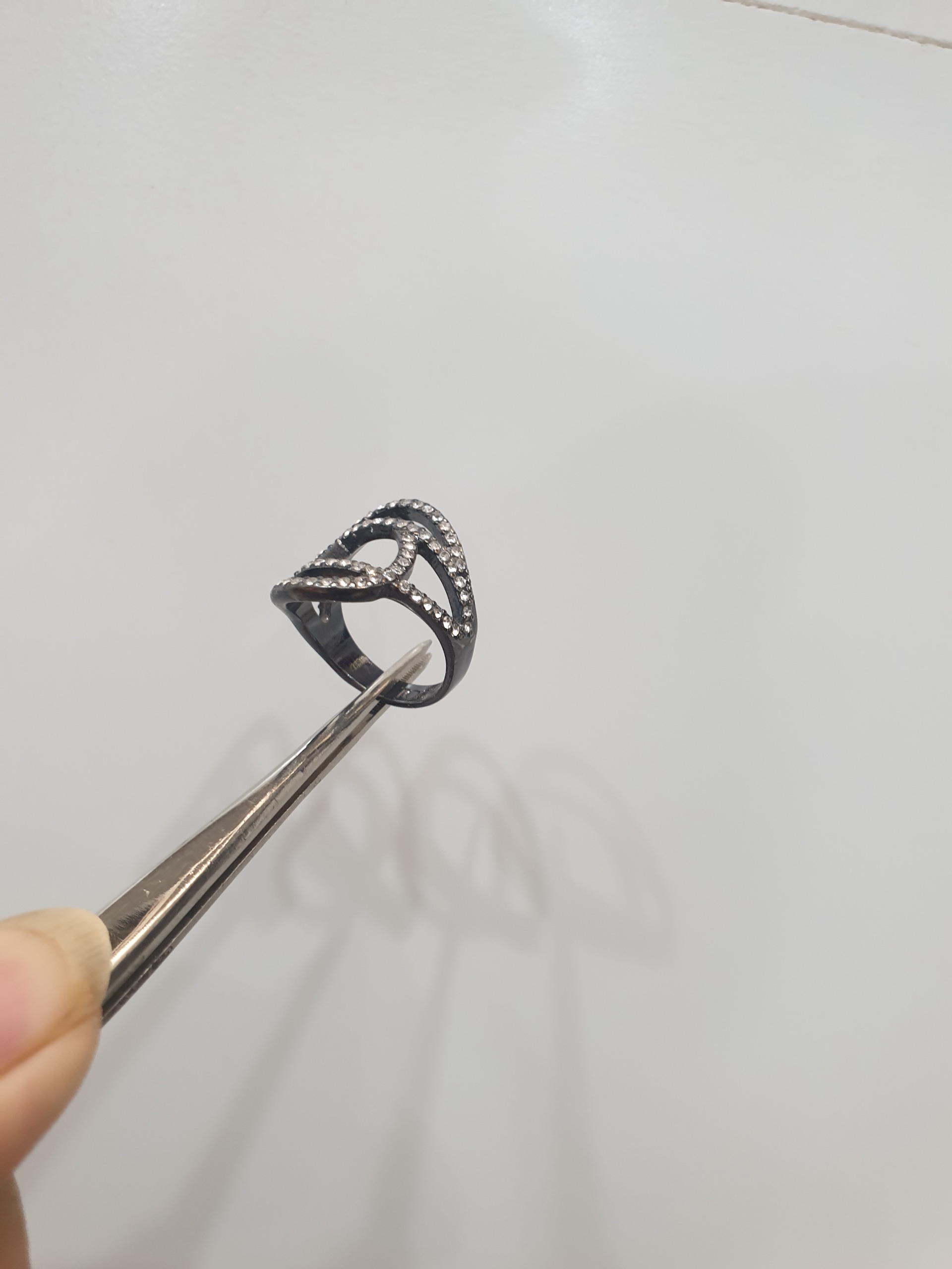 یک عدد انگشتر خاص مشکی با نگین های بسیار زیبا ،انگشتر نو نو میباشد