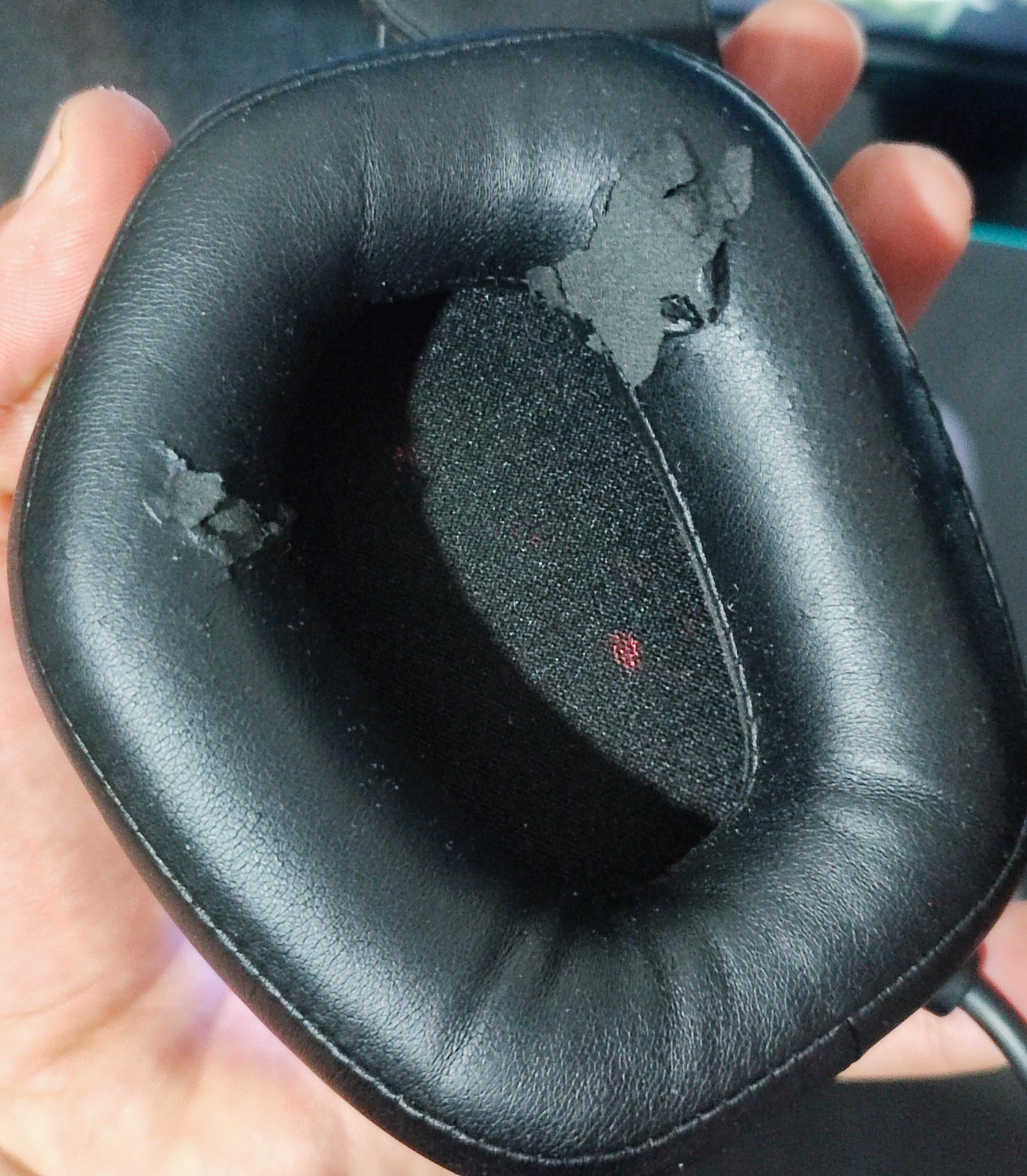 از نظر ظاهر و باطن هیچ مشکلی نداره فقط چرم کاپ سمت چپ و هد بندش کمی کنده شده اونم من زیاد روی سرم نمیزارم چون صداش به اندازه کافی بلنده معمولا روی میزه به خواطر هوا و رطوبت یکم اینجوری شده