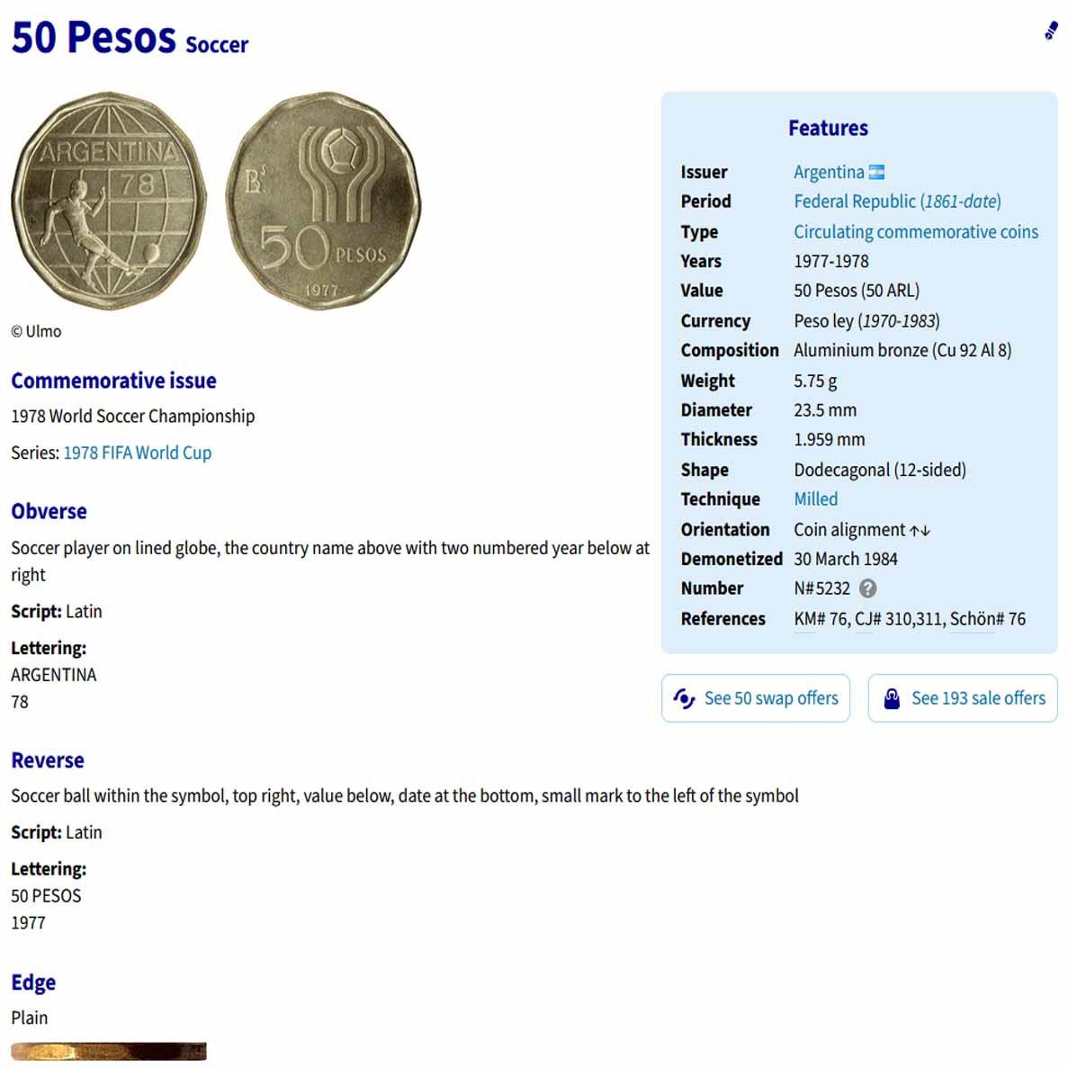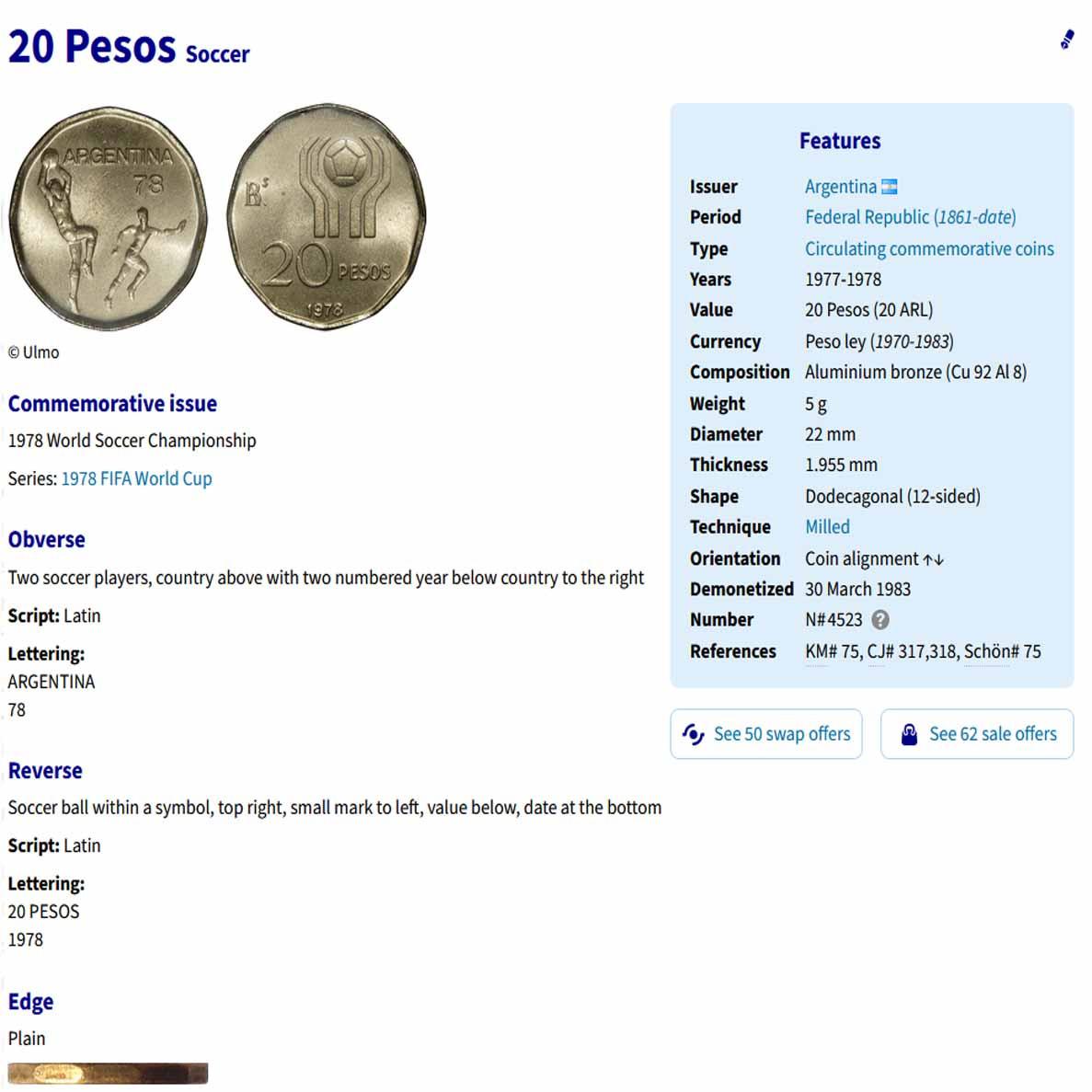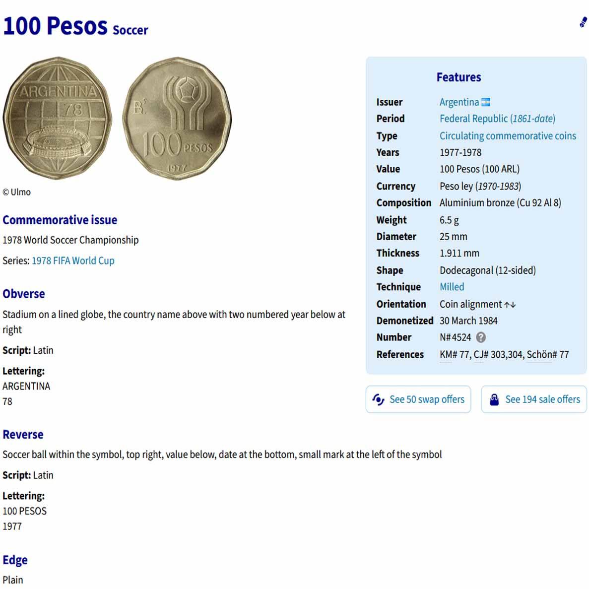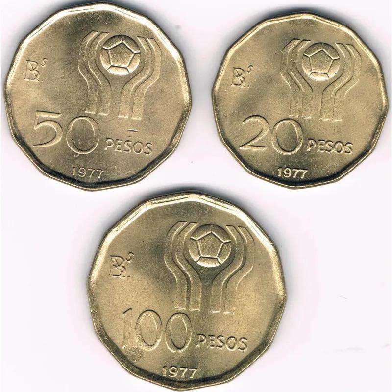 3 سکه یادبودی 20و50و100 پزو آرژانتین 1977 (نایاب)