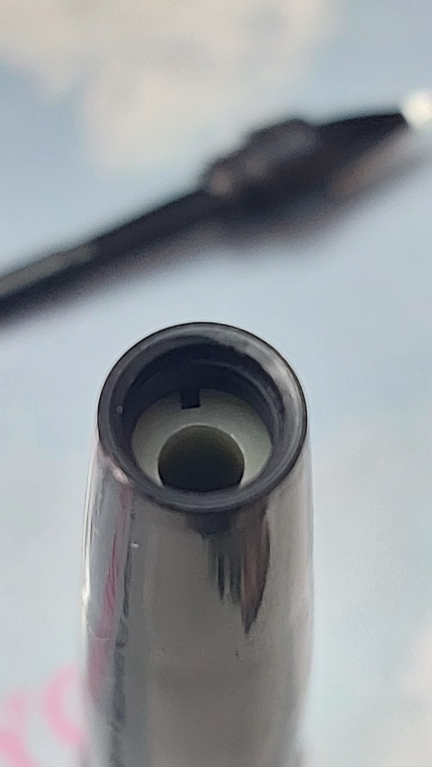 عکس از داخل قلم مبنی بر سفید بودن و جوهر نشدن خودنویس درآگهی قلم قرار داده شده که قابل مشاهده ست.