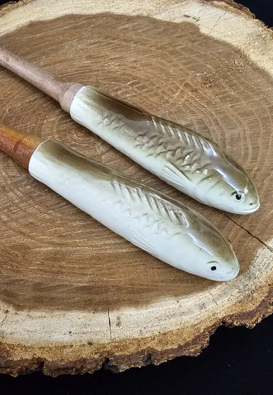 پاسخگوی سوالات قبل ازخرید(:___قیمت ذکرشده برای دوعدد باهم میباشد___یک عدد قاشق و یک عدد چنگال سالاد کارنایاب وکمتر دیده شده دسته سرامیک یا سفالی قدیم با ترک لعاب کاملا سالم (قسمت چوبی کار نیاز به پولیش ورسیدگی داره باهمین شرایط تقدیم)کیفیت وابعاد دقیقا