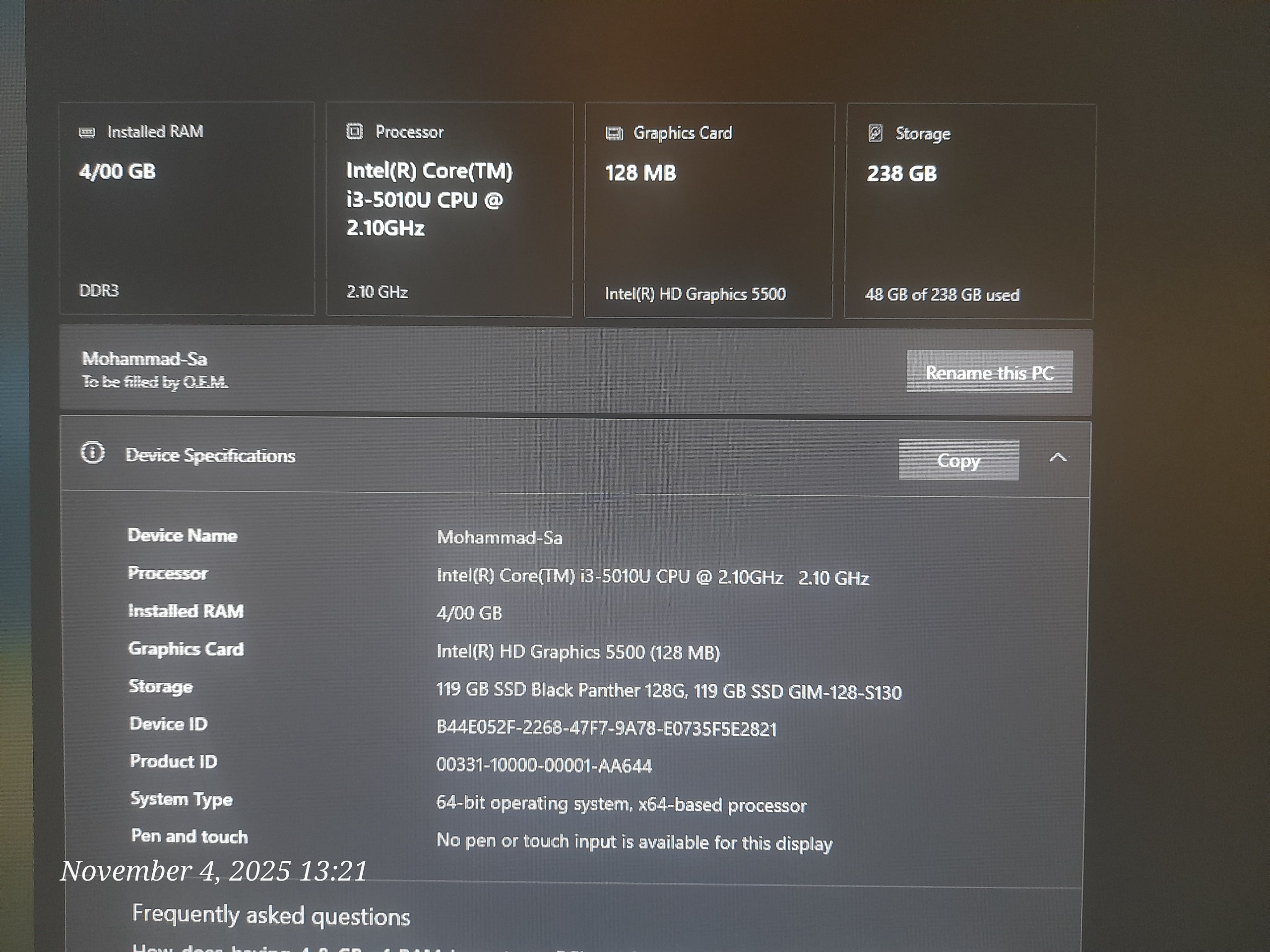 | پردازنده | Intel Core i3 |