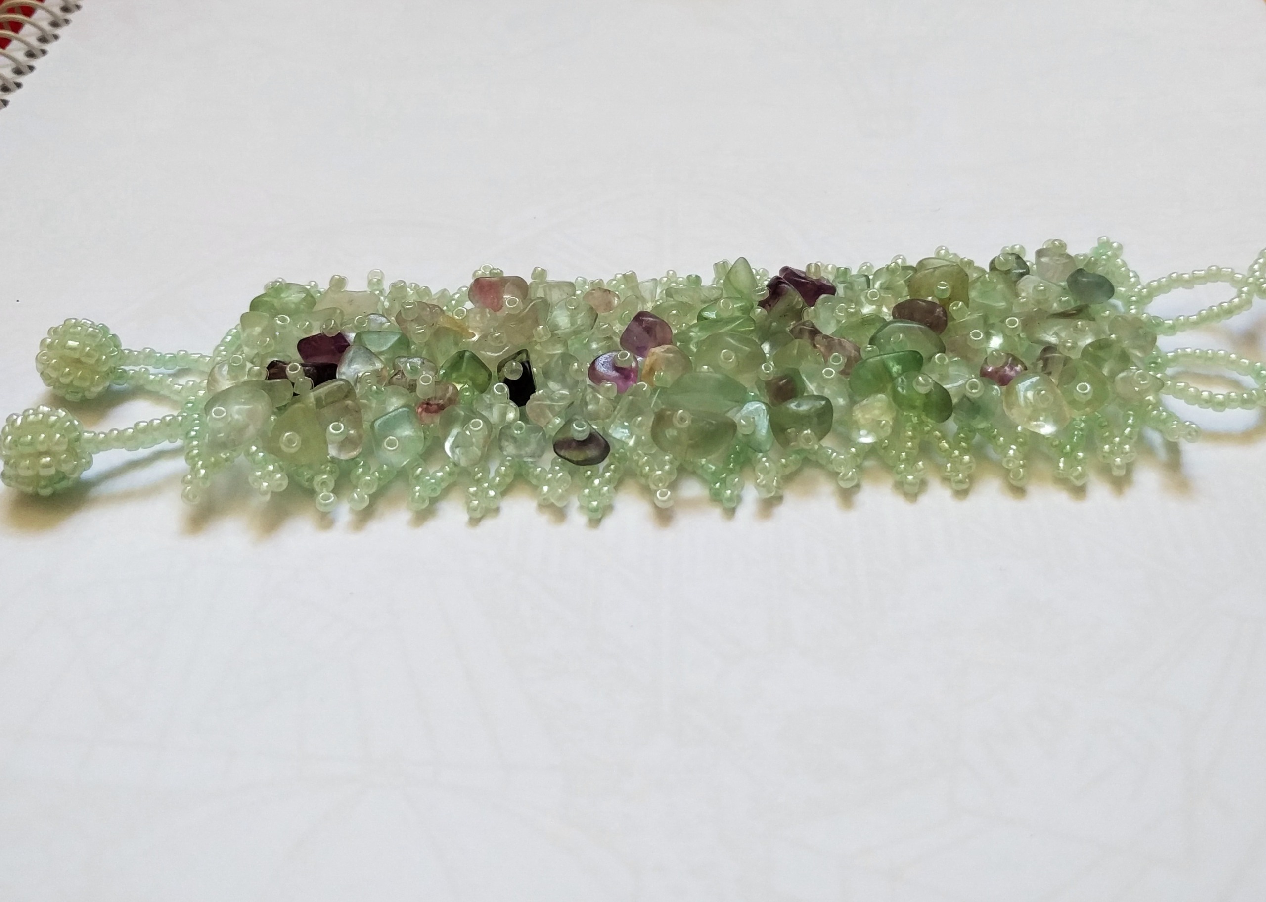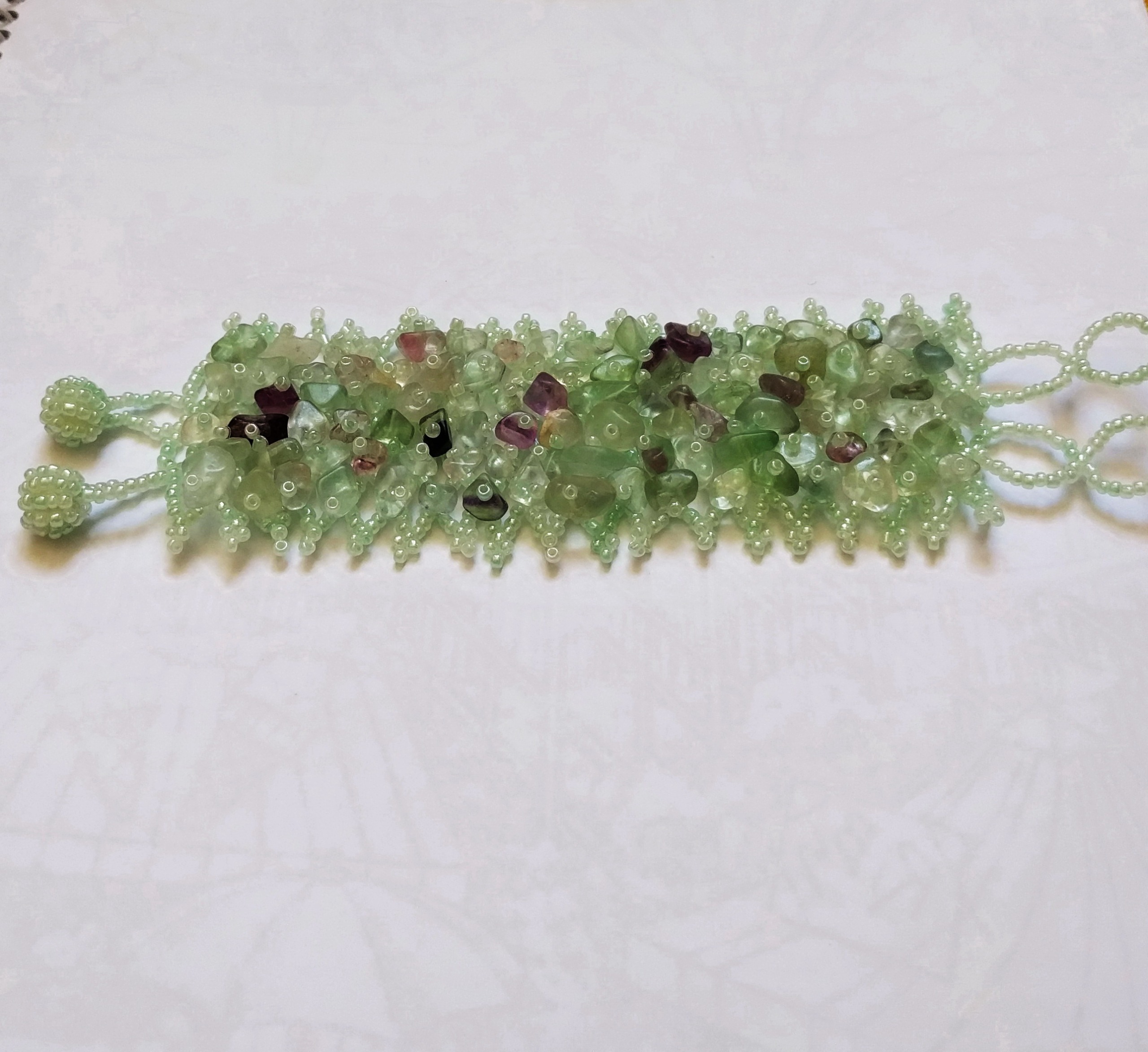 این دستبند از سنگ های" فلوریت" یا همان "فلورین" طبیعی سبز و بنفش زیبا درست شده است .