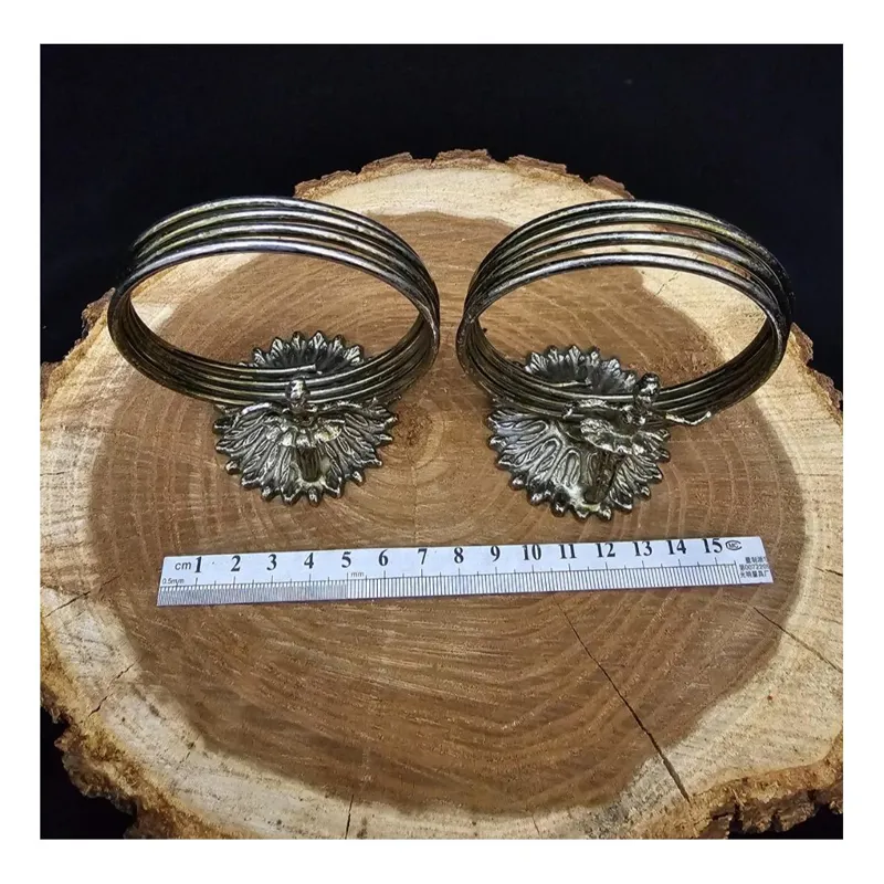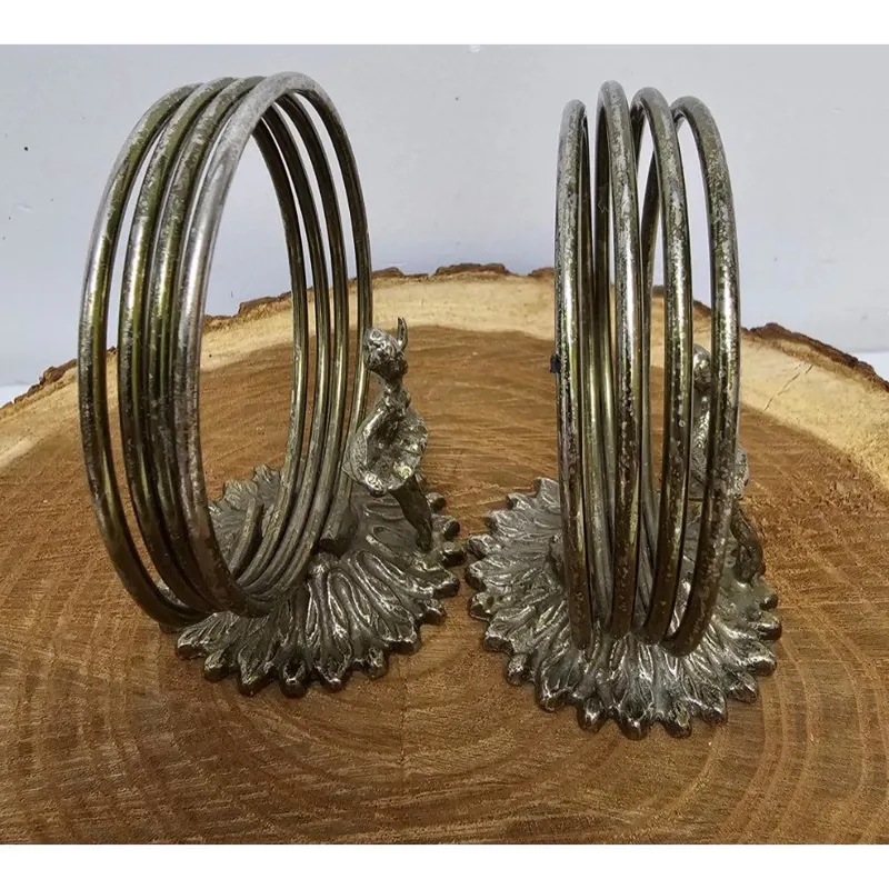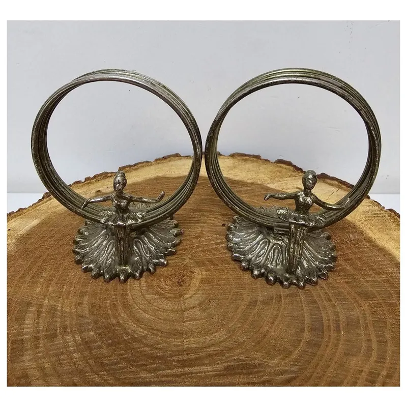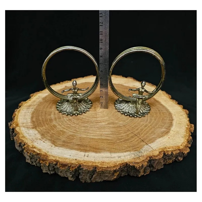 پاسخگوی سوالات قبل ازخرید (:____دوعدد جا دستمالی حلقه ای طرح دنس زیبا وخاص احتمالا برنزی آهنربا نمیگیره (دقیق اطلاع ندارم) کاملا سالم طبق تصویر دور حلقه های کمی رنگ رفته تصاویر با نور بالا وبازوم کاملا مشخصه کیفیت وابعاد دقیقا طبق تصاویر___لطفا به نکات