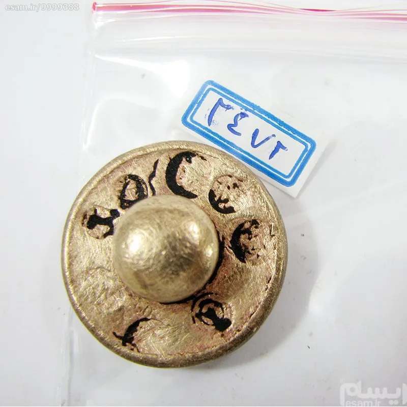 به علت قدیمی بودن و این که اجناس برنجی به مرور زمان تیره میشوند آن را تمیز کرده ام و پس از عکس برداری در نایلون زیپی گذاشته شده است با این صورت امکان دارد باز به مرور زمان در مجاورت هوا یا حتی در پاکت زیپی باز تغییر رنگ دهد و کمی کدر شود که میتوان آن را با جلاسنج به رنگ طلایی در بیاورید لطفا با اشراف به این موضوع خرید کنید و خرید شما نشانه پذیرفتن این موارد می باشد.