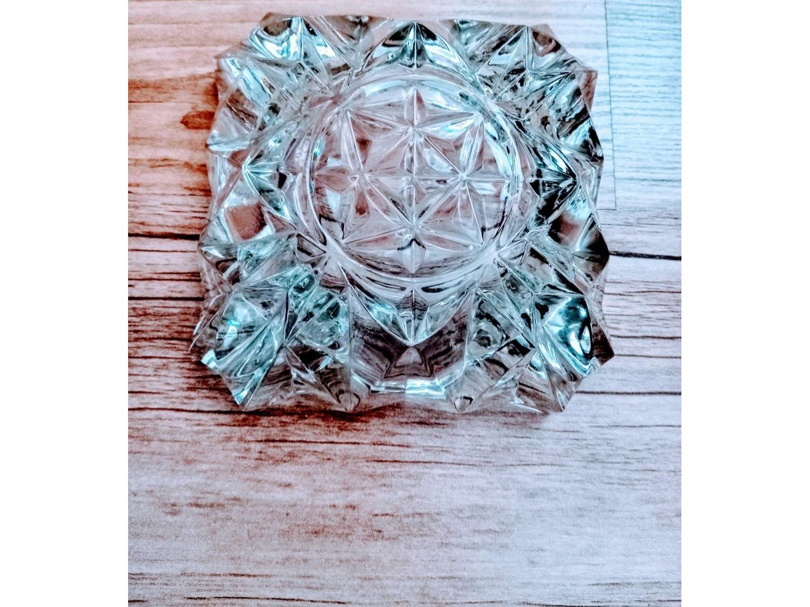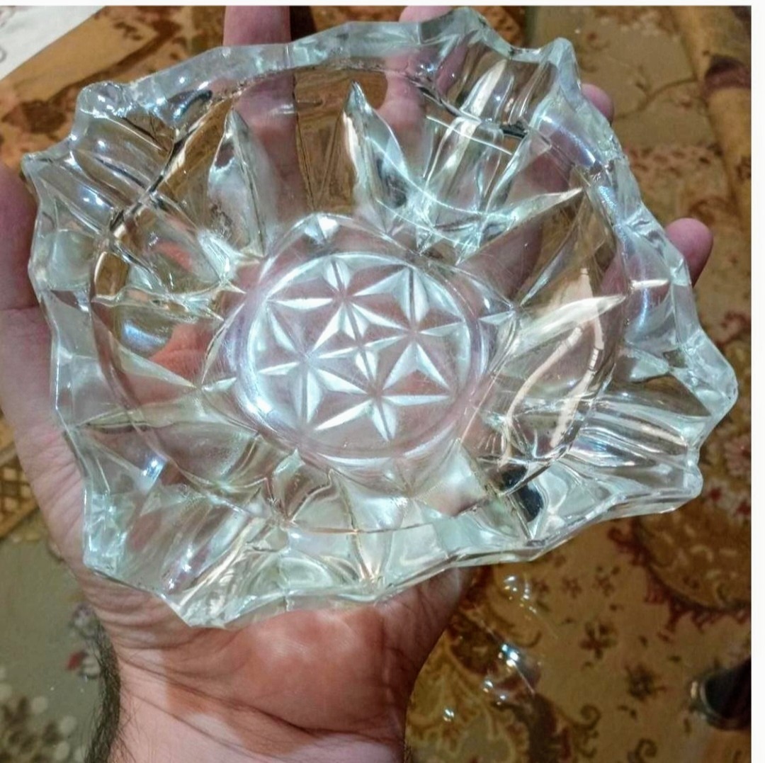زیرسیگاری قدیمی کریستالی ساخت کشور ایتالیا 14 سانت طول و 14 سانتی متر عرض آن می باشد. بدون هیچ گونه شکستگی.