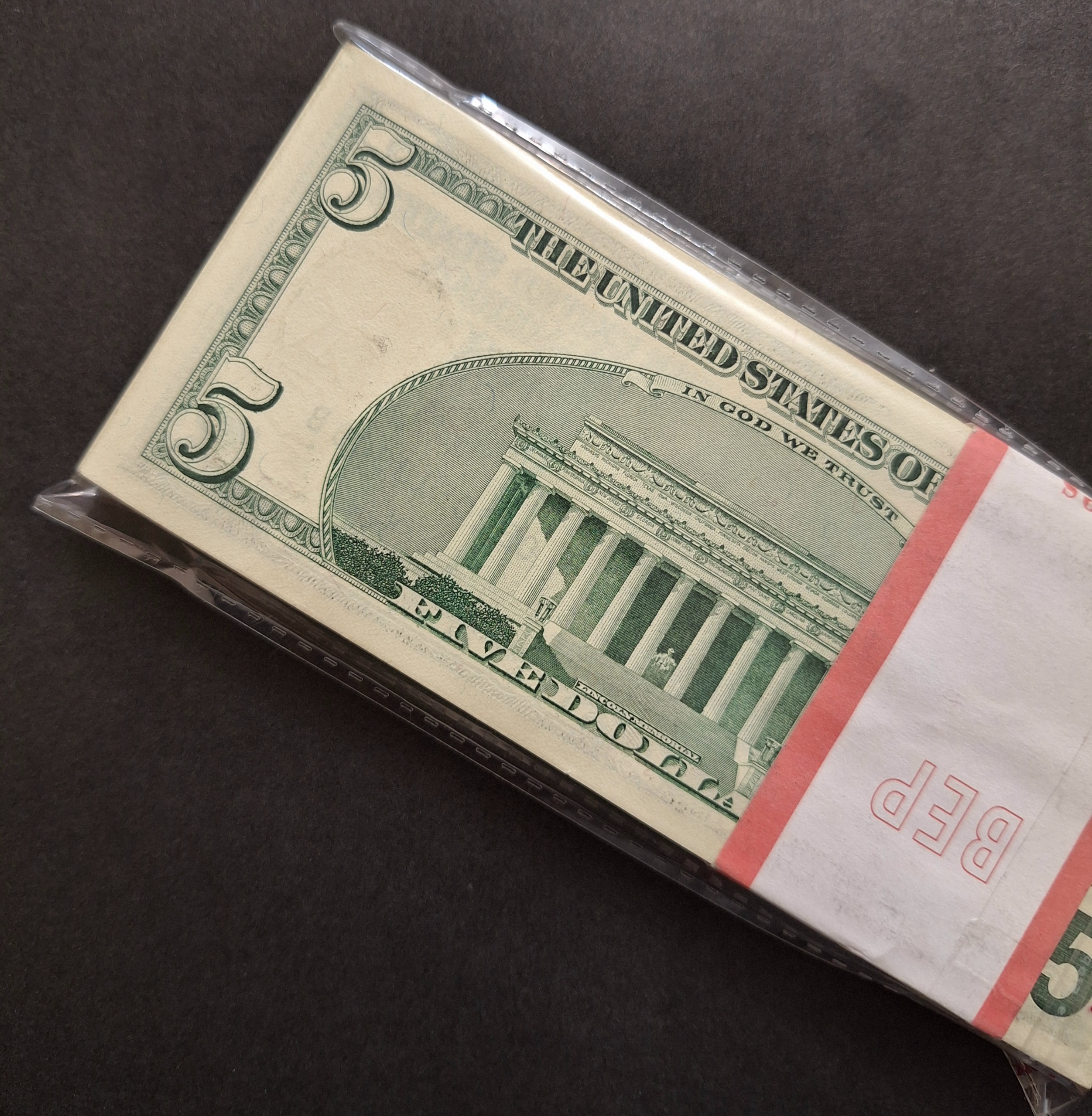 بسته آکبند 5 دلاری سفید چاپ 2001