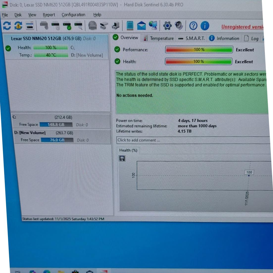Ssd لکسار 512 گیگ در حد اوپن باکس کارکرد فقط 4 روز که عکس تست گذاشتم مشخصه سلامت 100 درصد