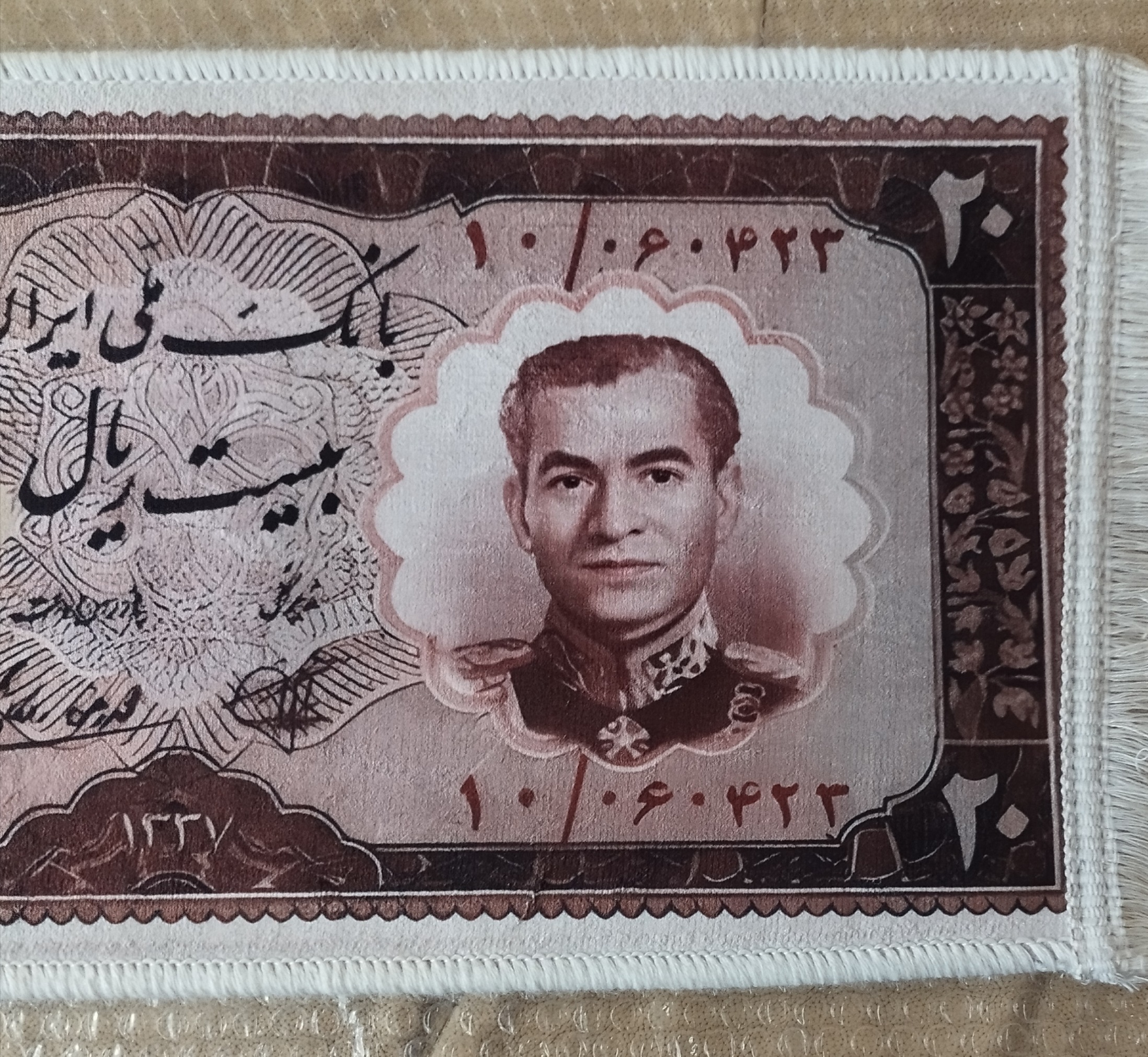 طرح نقش اسکناس محمدرضا پهلوی روی فرش سایز بزرگ