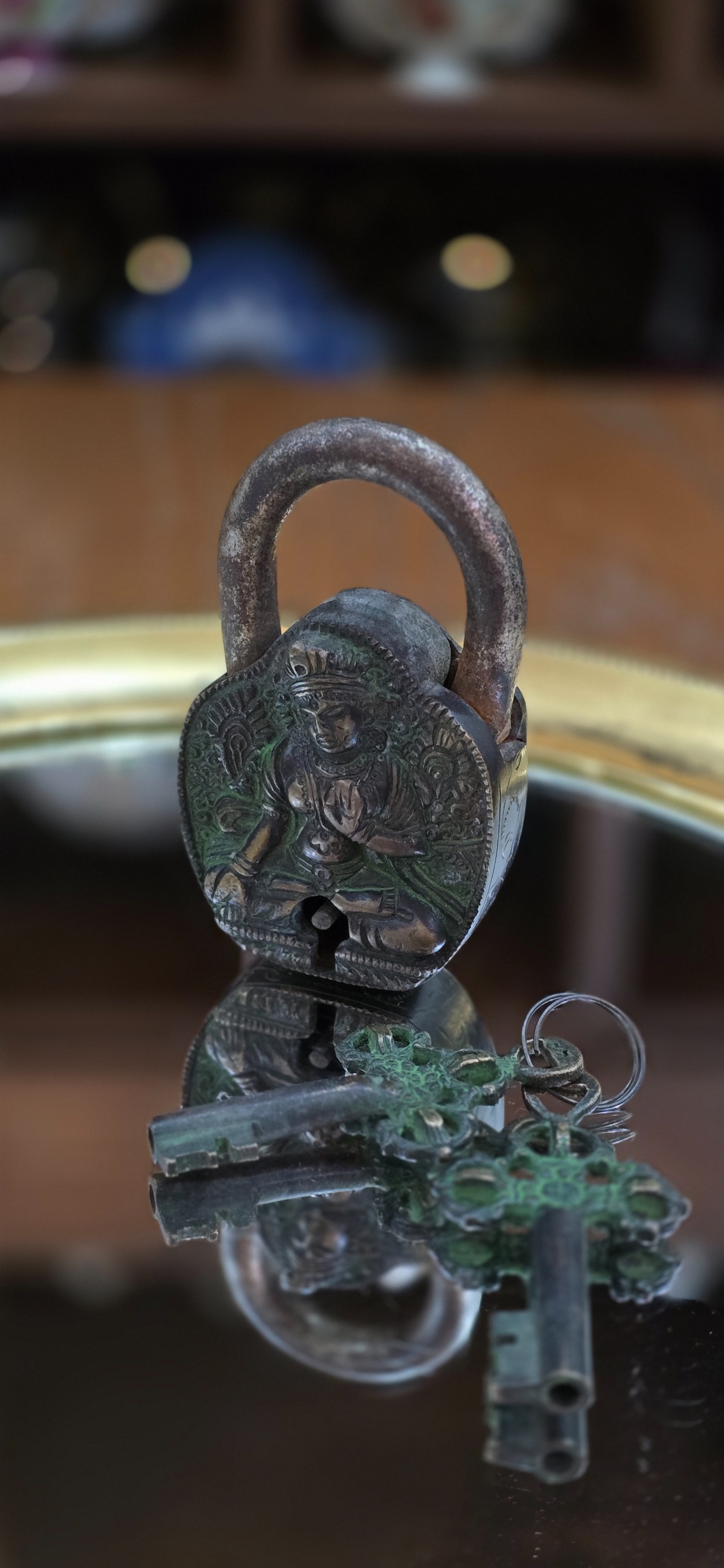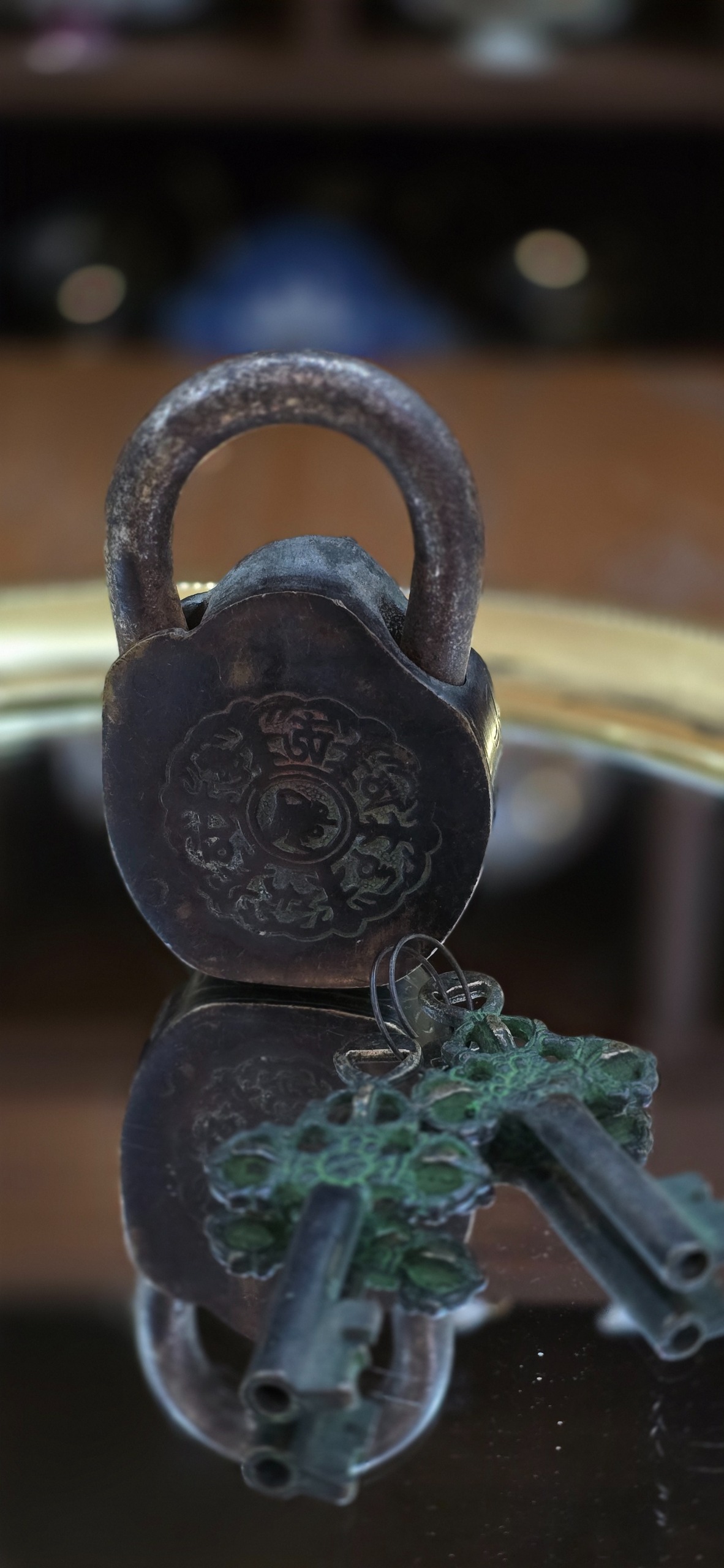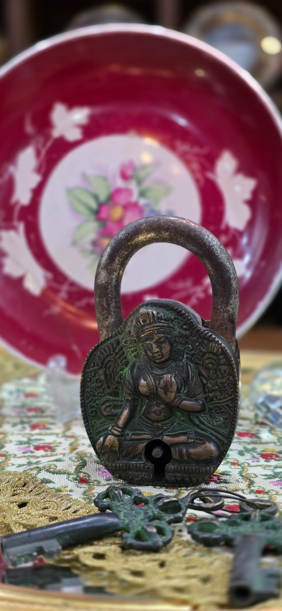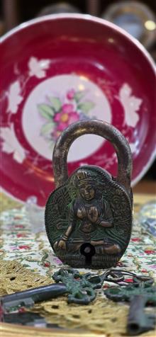 قفل برنجی تبتی نمادی از حفاظت، معنویت و هنر قرن نوزدهم