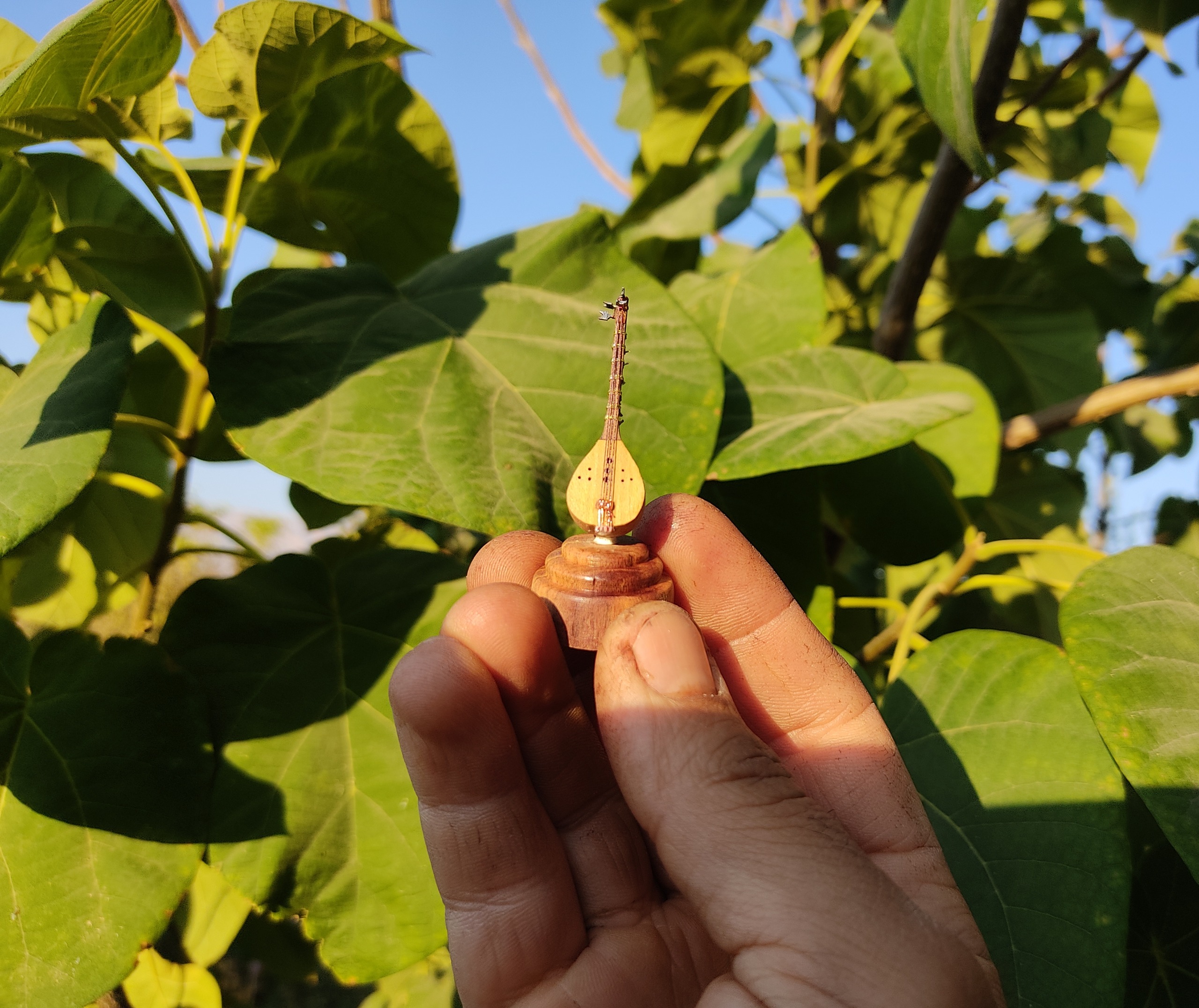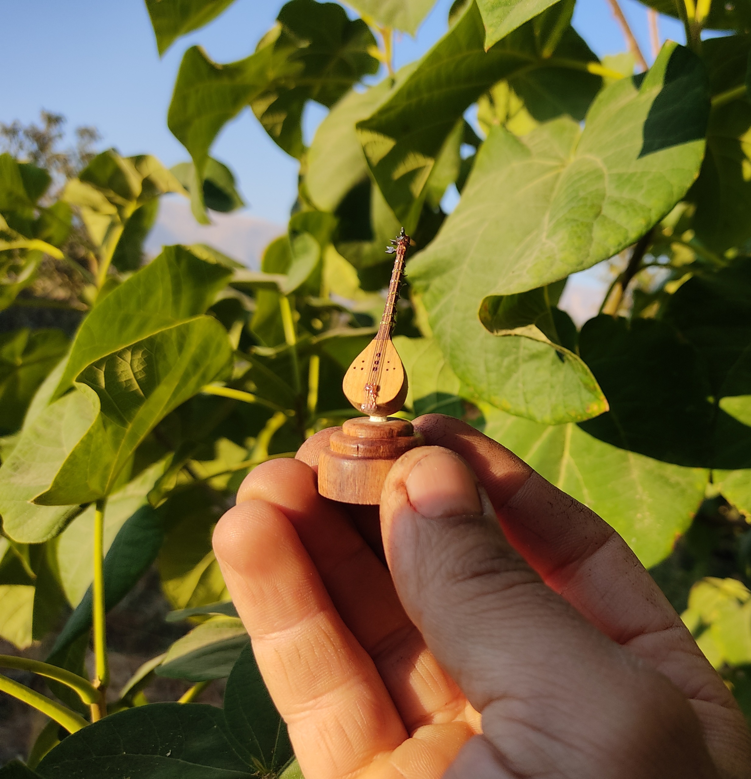 طول کلی ساز 4.5 سانتی متر می باشد. تمامی جزییات ساز شبیه ساز اصلی هست. کاسه از چوب توت، دسته از گردو و پایه از چوب پسته وحشی ساخته شده است.