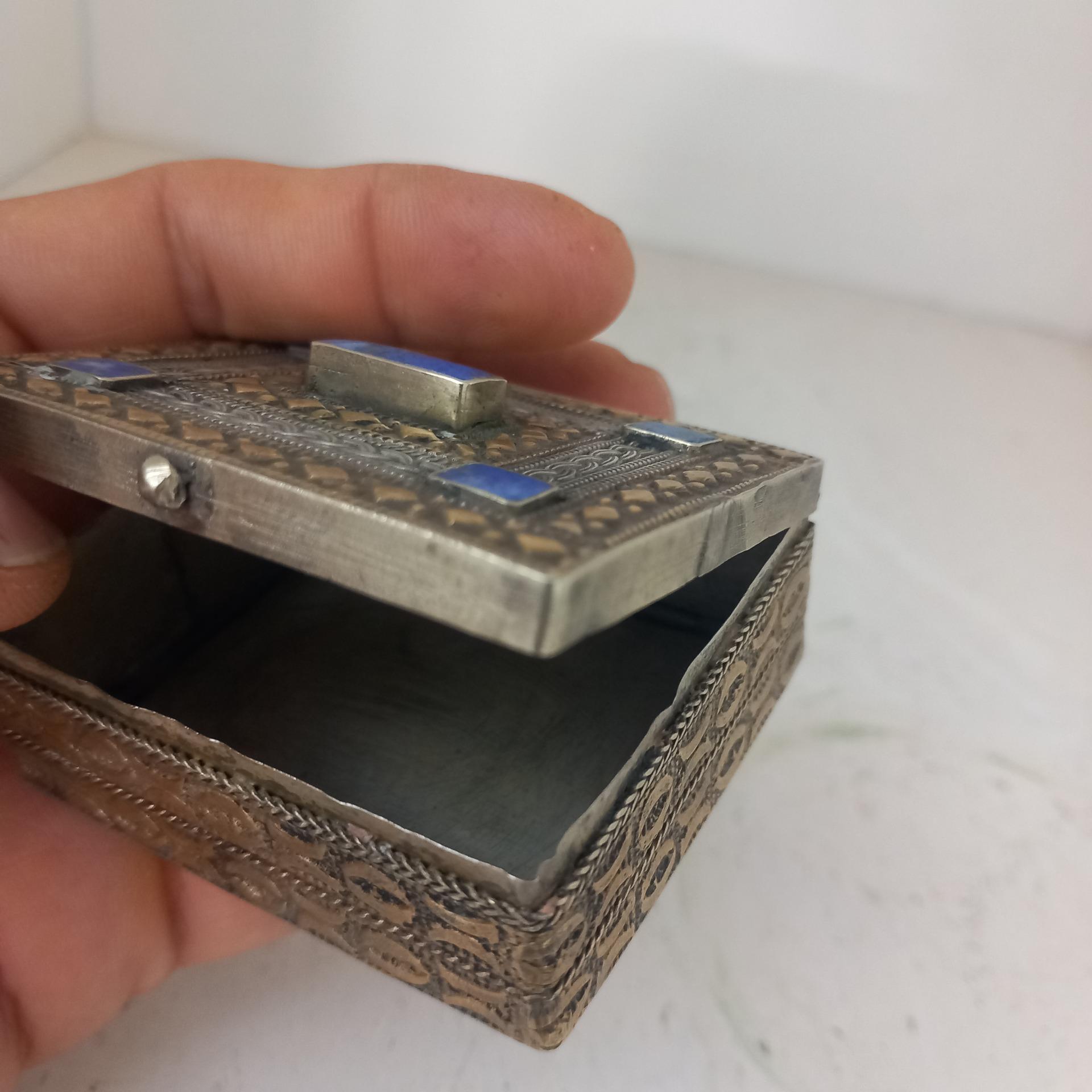 جاجواهری قدیمی قاجاری دارای سنگ فیروزه و قلمکاری