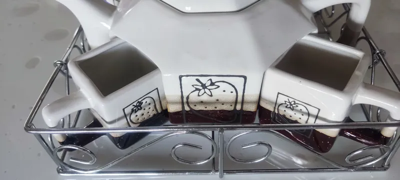 مشخصات در لیست نبودقوری چینی به همراه چهار عدد فنجان چهار گوش که به شکل زیبا داخل یک باکس فلزی هستند همه سالم و در حد نو دکورش خیلی قشنگه هیچ مارک و نوشته سازنده ندارد خیلی جنس درجه یک نیست اما طرح و شکلش برابر تصاویر زیباست مناسب چائ یا قهوه خوری همه سالم بدون شکستگی و ترک و لب پری