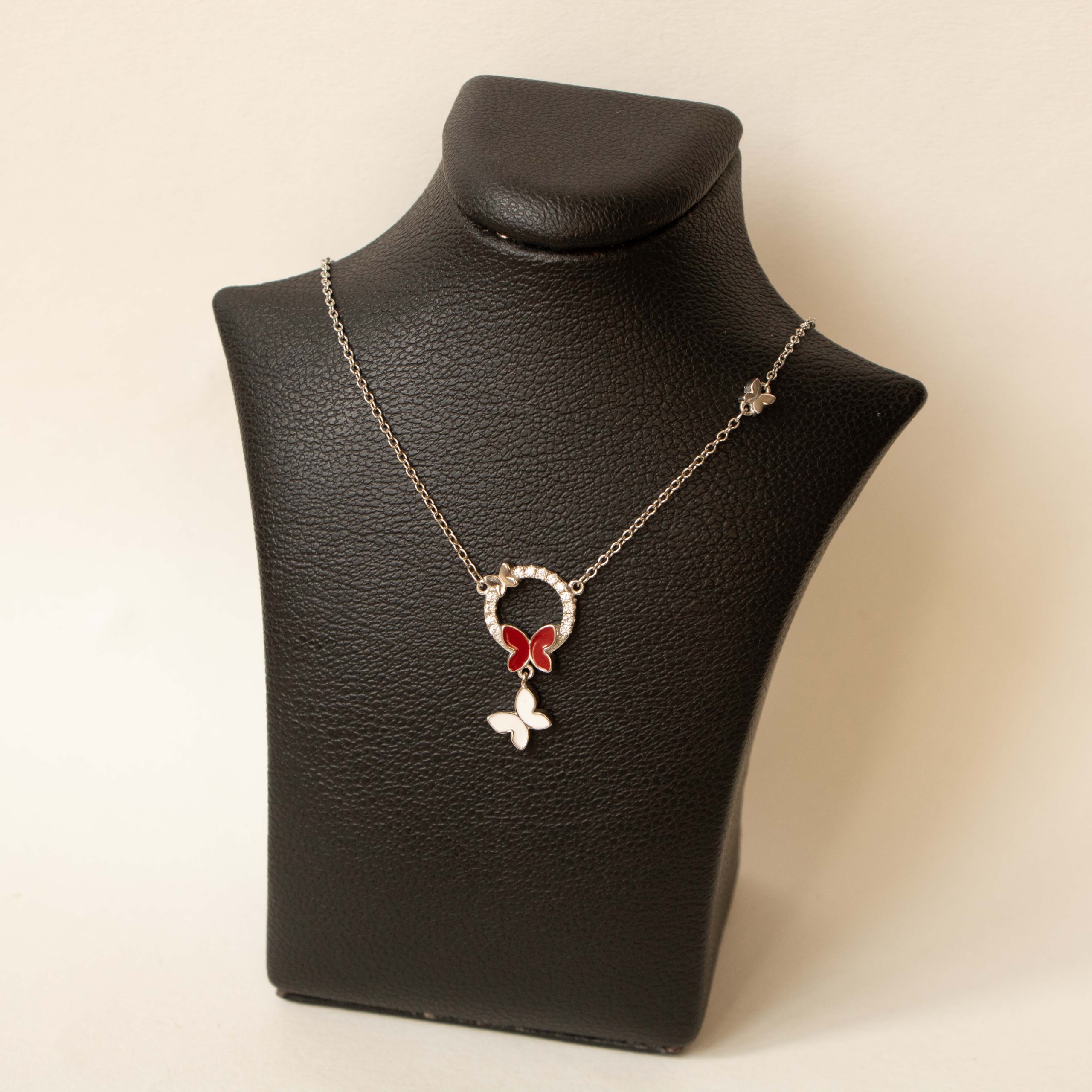گردنبند زنانه طرح دو پروانه ظریف سفید و قرمز، نمادی از لطافت، عشق و زیبایی