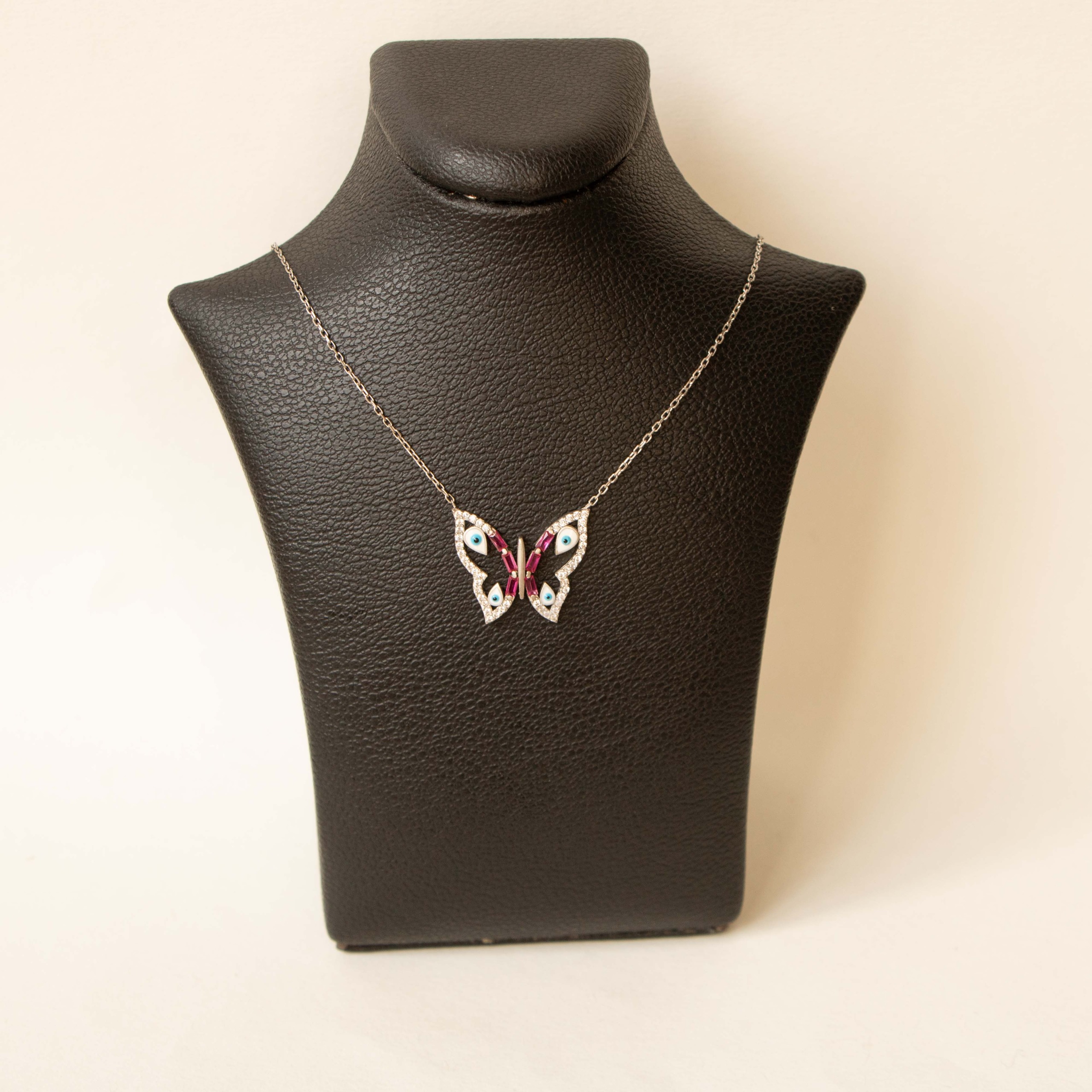 گردنبند زنانه طرح پروانه با سنگهای بنفش و چشم زخم، ترکیبی از زیبایی، انرژی مثبت و نماد حفاظت