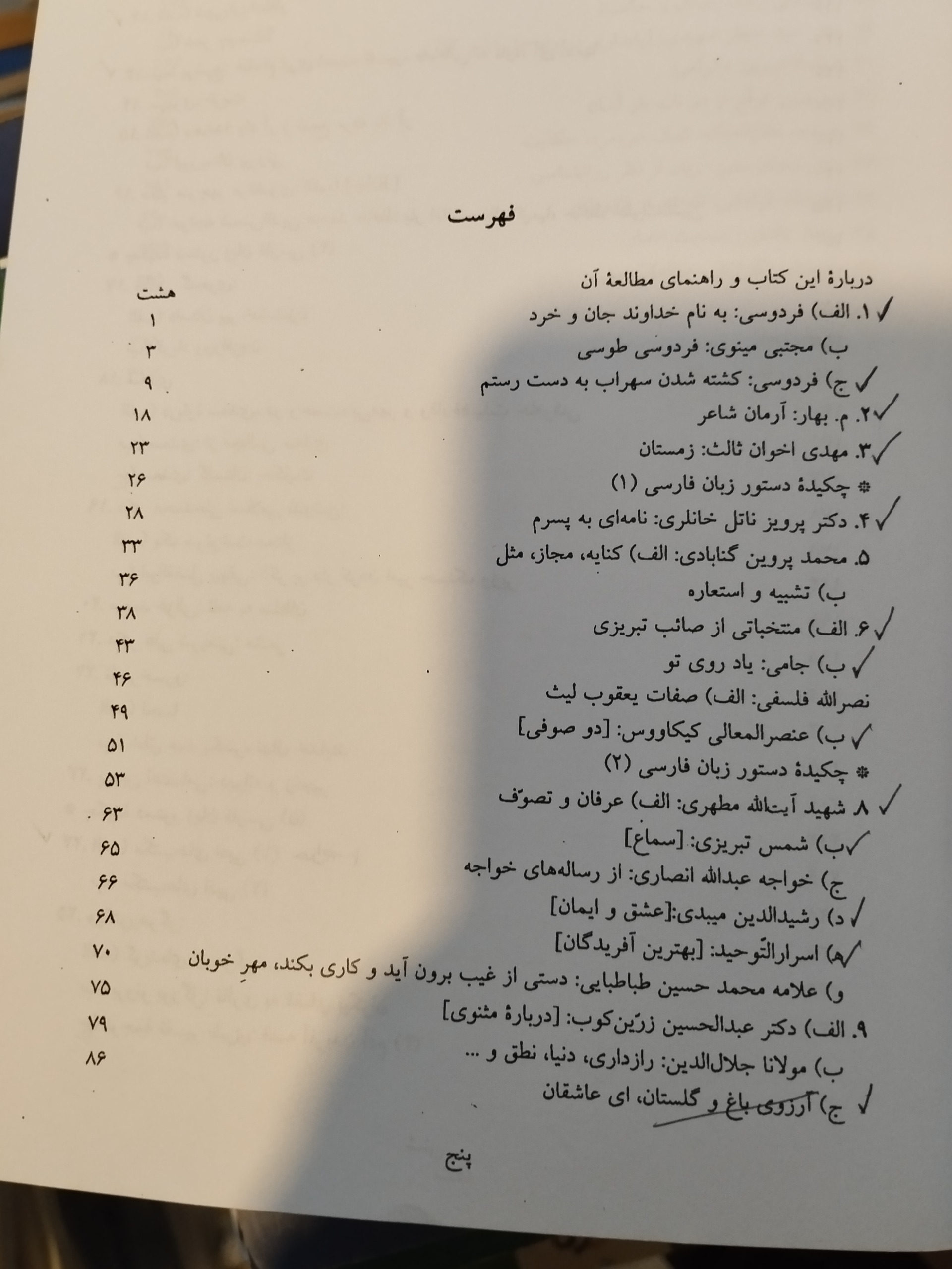 تمیز ، بدون لک و قلم خوردگی در متن ( فقط روی صفحه ی فهرست چند علامت خورده که در عکس مشخص است )