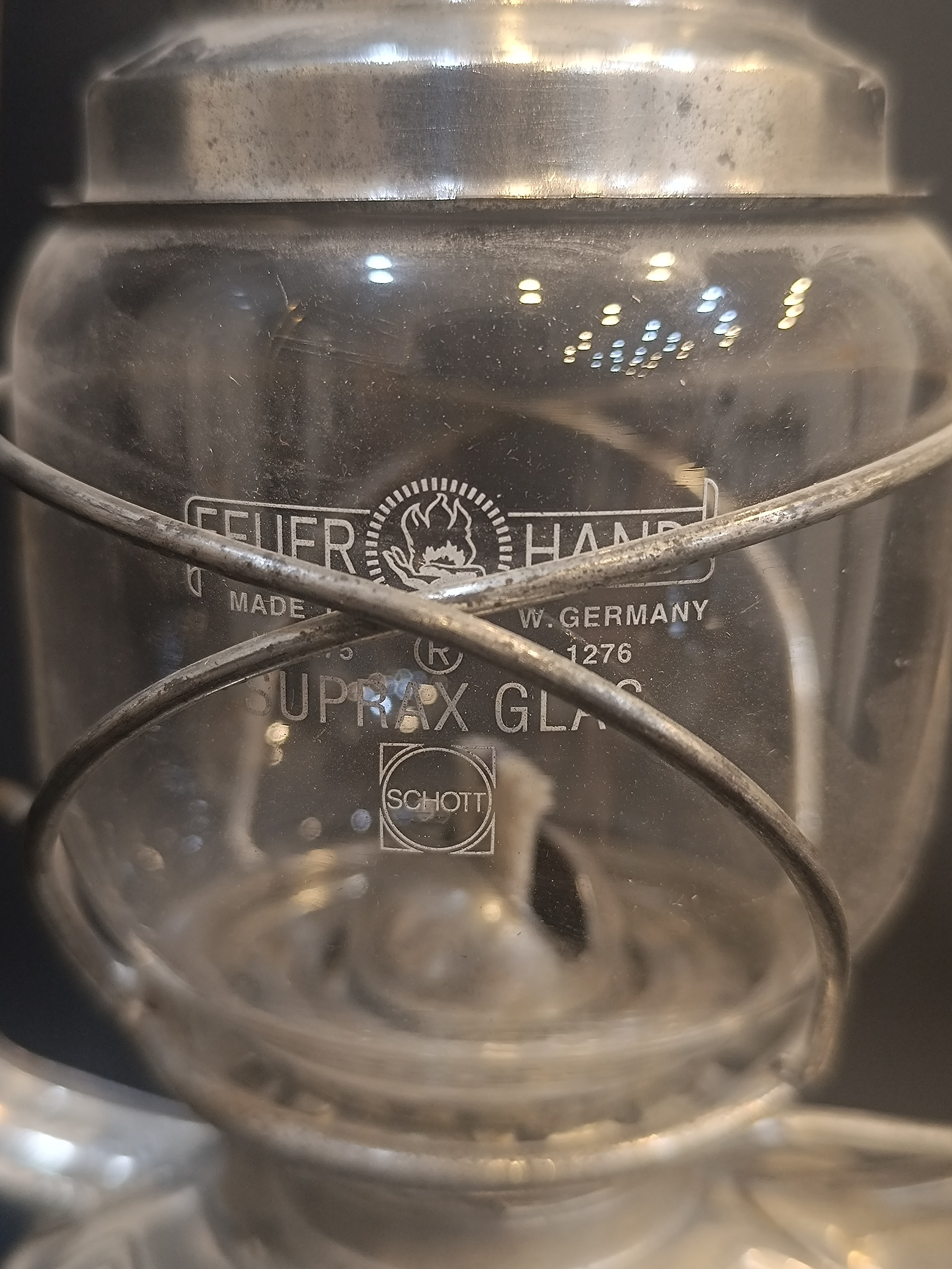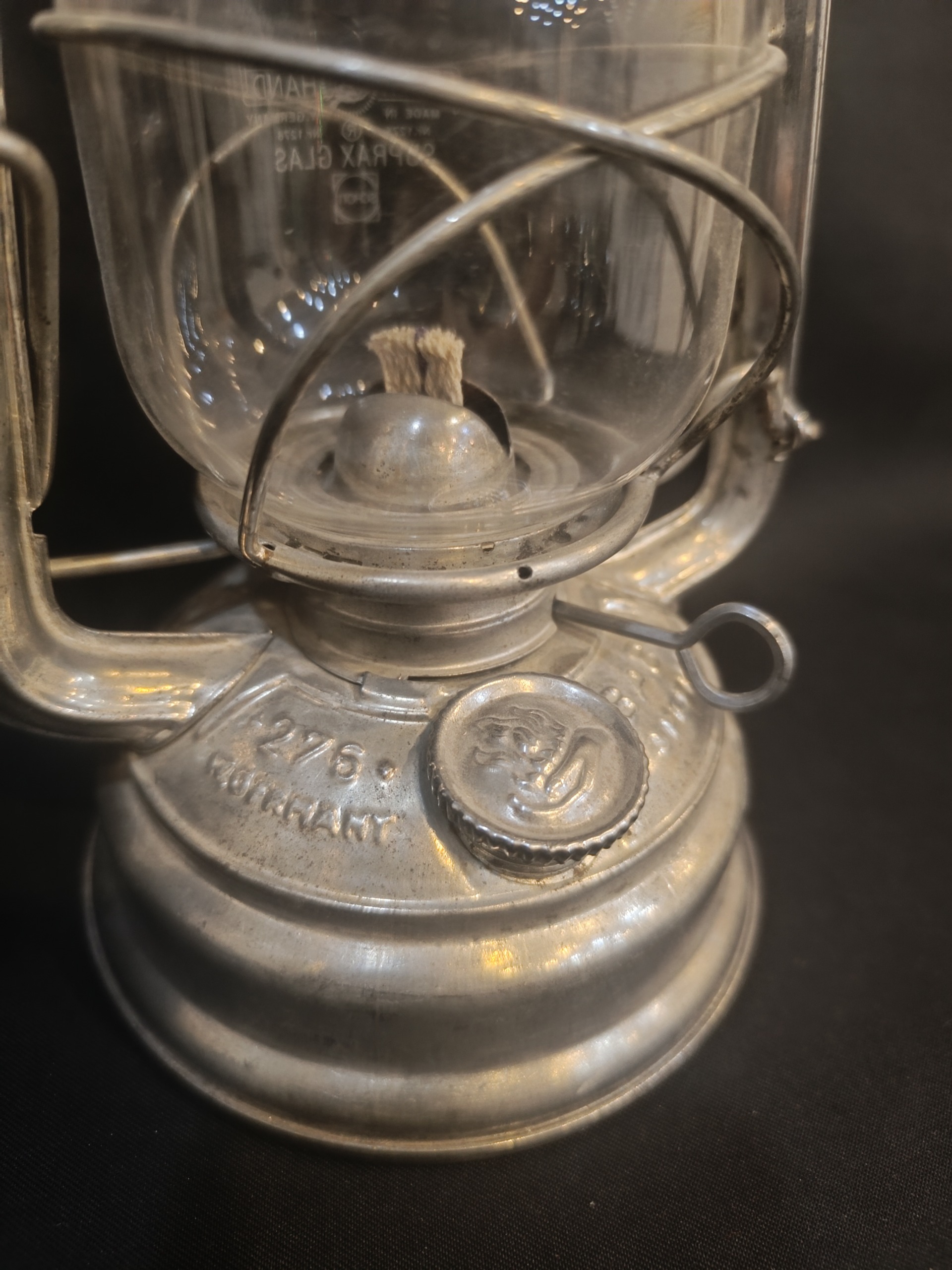 فانوس نفتی نو نو  اصلا  نفت داخلش نرفته فتیله . شیشه  فابریکی روی شیشه ساخت المان نوشته . این فانوس برای المان غربی هست . حالا خودتون قدمتش رو حساب کنید . طبق عکس تحویل میشه . ارتفاع 26 سانت