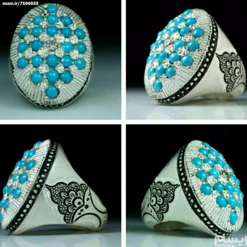 انگشتر دستسازفوق سنگین برلیان وفیروزه محک اصل نیشا