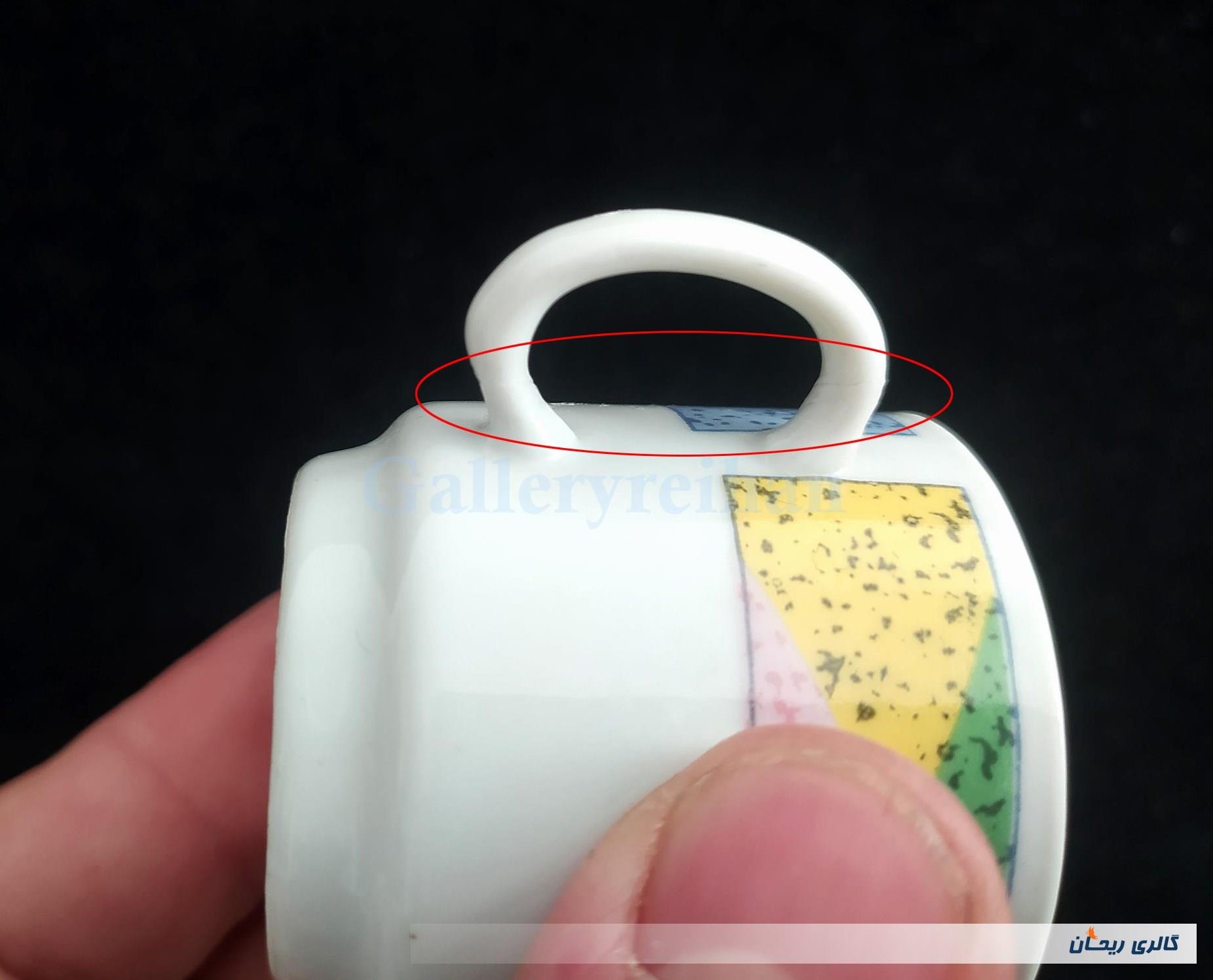 فقط یکی از فنجانها در قسمت دسته شکسته و چسبانده شده است ولی به راحتی مشخص نیست