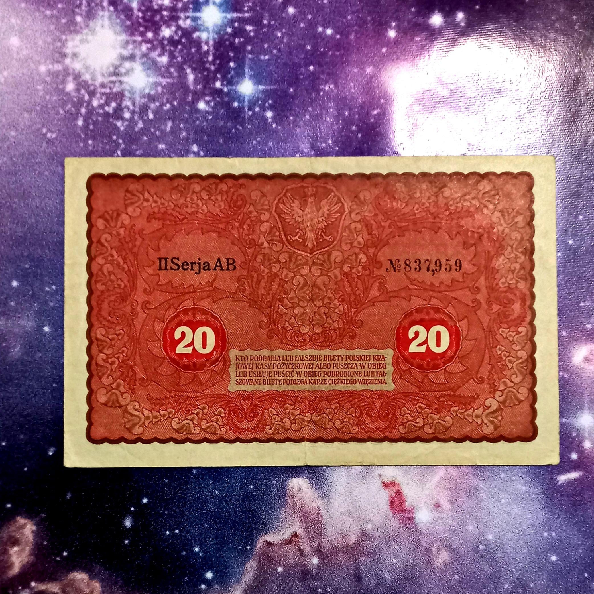 اسکناس 20 مارک 1919 لهستان سایز بزرگ و کمیاب