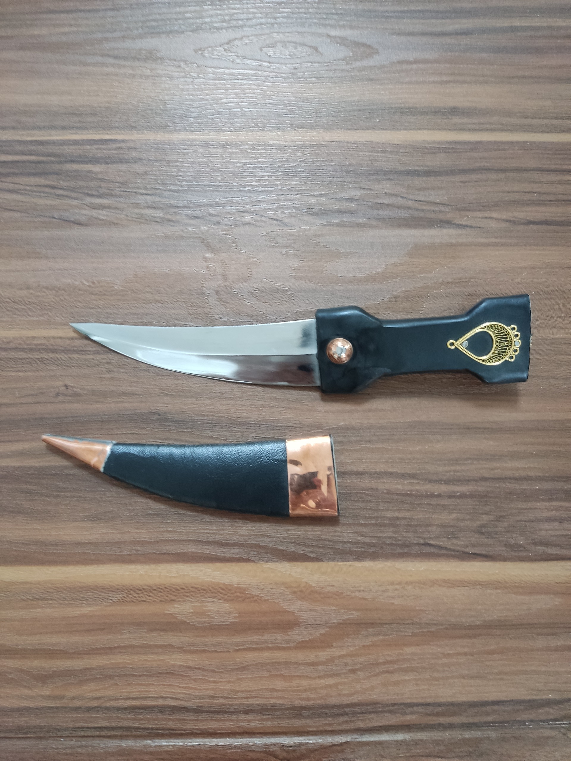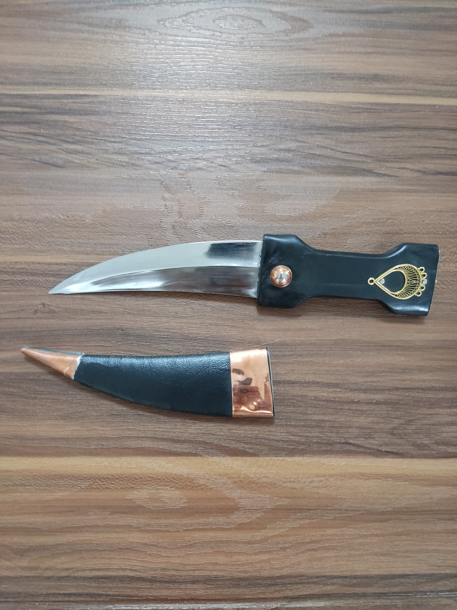 چاقو قدیمی (خ ن ج ر) با غلاف چرمی به طول 31 سانتیمتر تیغه ضخیم و جوندار جنس دسته پلاستیک فشرده مطابق تصویر آنتیک و کلکسیونی وچشم نواز خواهشمندم از دیگر کالاهای اینجانب دیدن فرمایید.