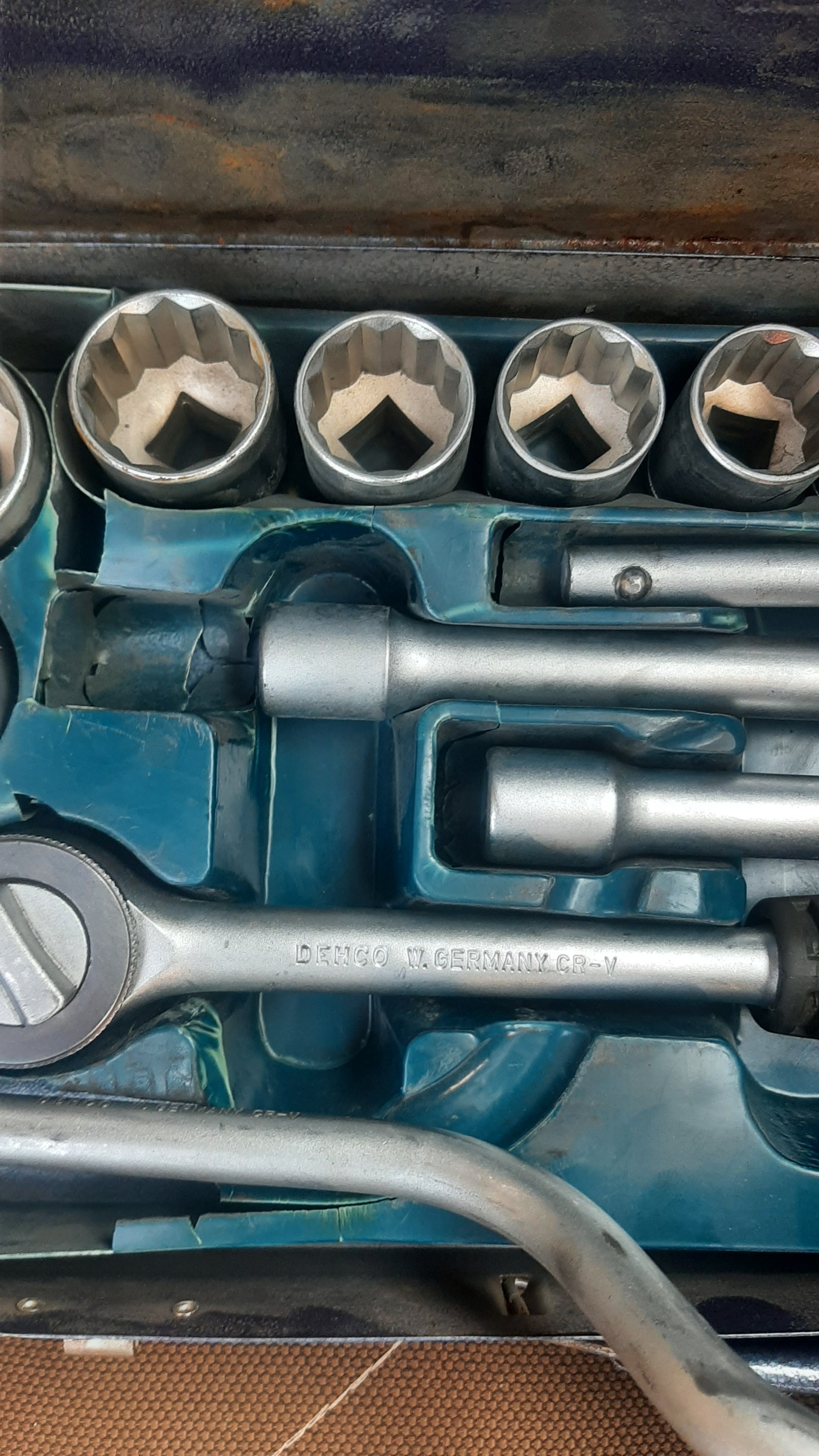 آچار بکس 24 پارچه دهکو آلمان با جعبه فلزی خودش در حد نو هست خیلی تمیز هست و فشار قوی هست و روی تمام قطعات مارک دهکو آلمان هک شده 12 پره هست و خدایی زیر خاکی هست در حد نو و چون داخل انبار بوده جعبه یکم روغنی شده ولی کاملان نو و آلمانی اصل به شرط تمام اندازه ها و سایزها کامل هست این ست روی ماشین بنز قدیمی بوده و برای مکانیک کارا و کسایی که میخوان یه آچار بوکس عالی داشته باشن با آلیاژ بالا و فشار قوی حک شده روی کار....