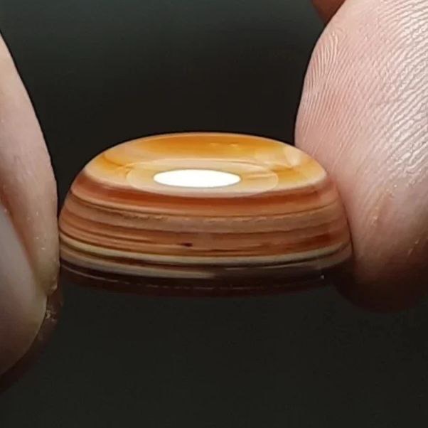 عقیق چند پوست غولپیکر منظم و میزان اصل معدنی ، سراسر طوق های رنگی موازی ( پرگاری ) ، تراش دقیق و منظم ، قواره درشت و ارتفاع دار و چشمگیر