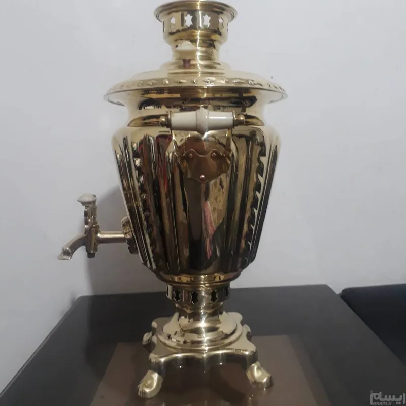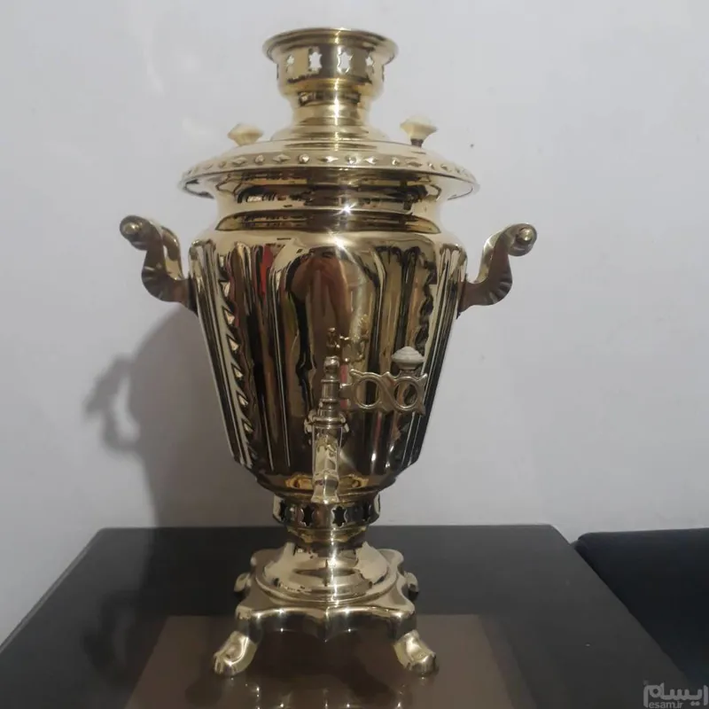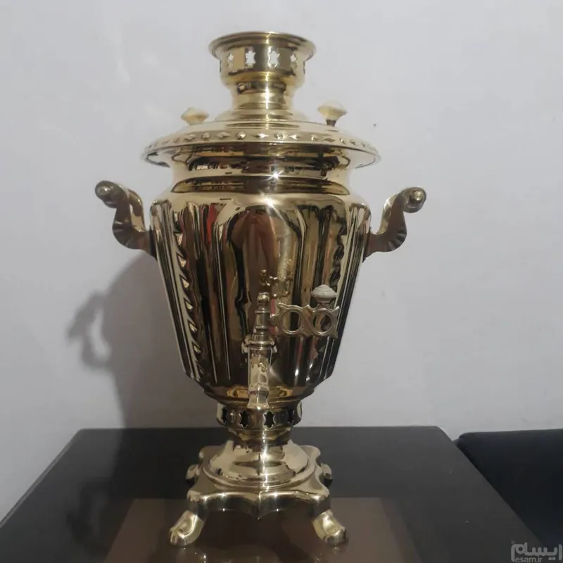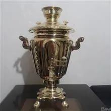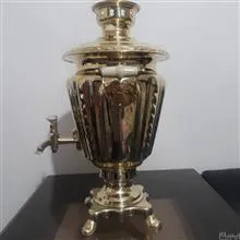 سماور زغالی روسی اندازه 3 لیتری سالم بدون ایراد جنس برنجی ارتفاع 35 خیلی ضخیم و عالی