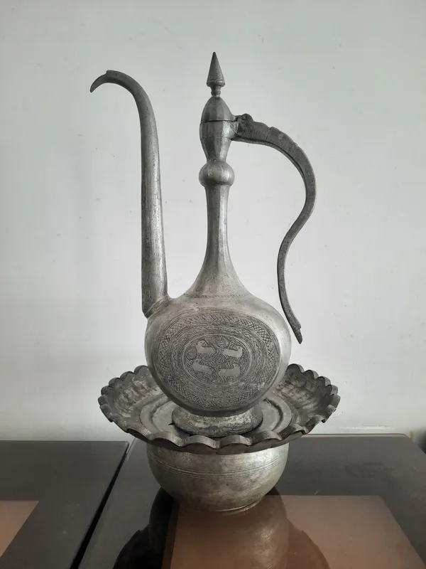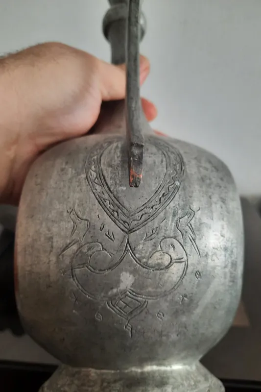 آفتابه لگن مسی قلم دار نقش حیوان بدون ایراد قدمت قاجاری واقعا کم نظیر به شرط قدیمی قدیمی