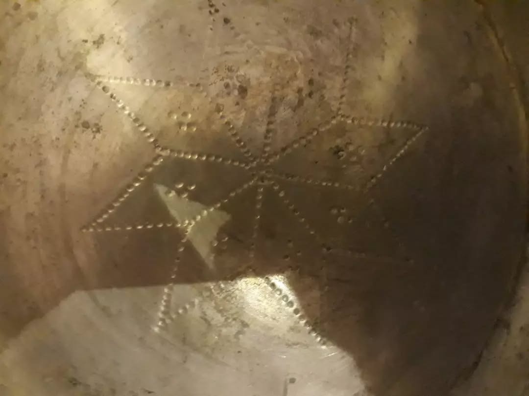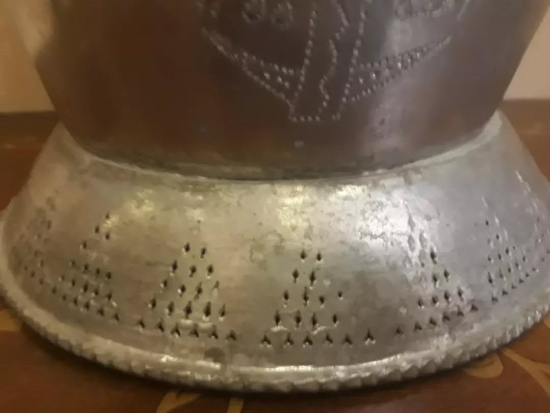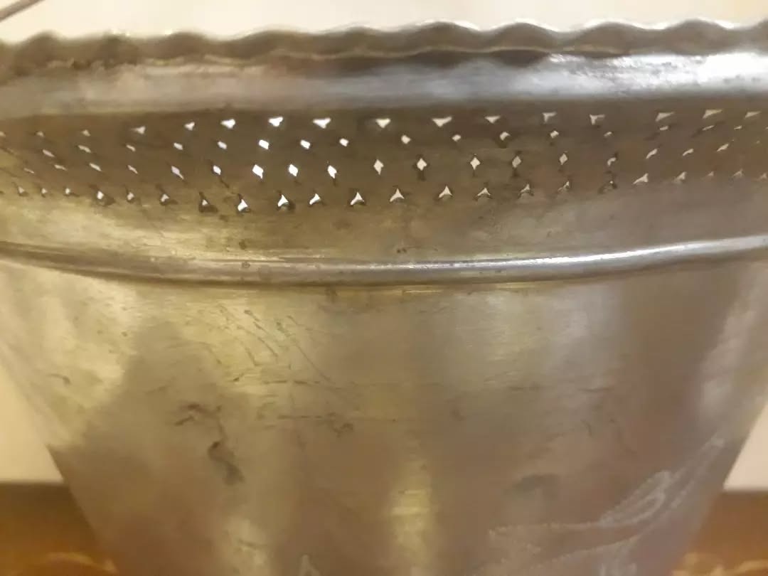 سطل مس زیبا و شبکه و قلم لب کنگره عتیقه