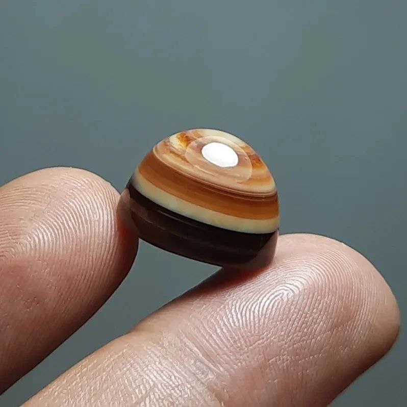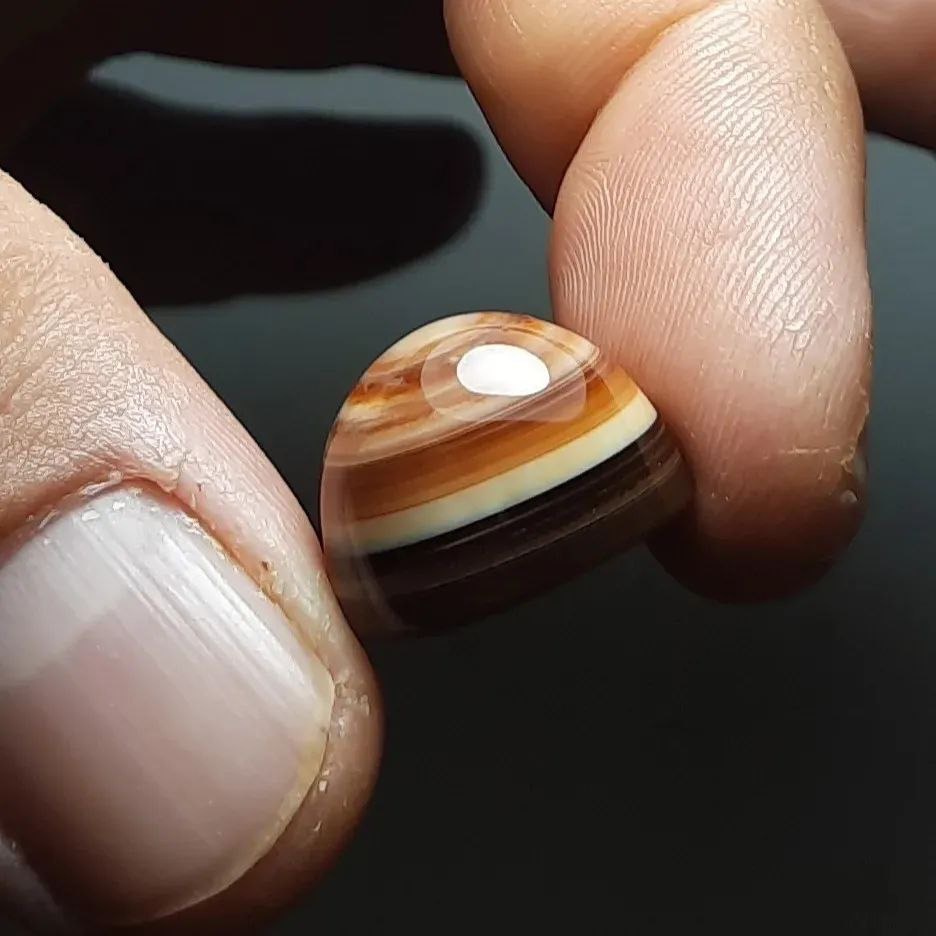 عقیق چند پوست منظم و میزان اصل معدنی ، سراسر طوق های رنگی موازی ( پرگاری ) ، تراش دقیق و منظم ، چشمگیر و ارزشمند و خاص