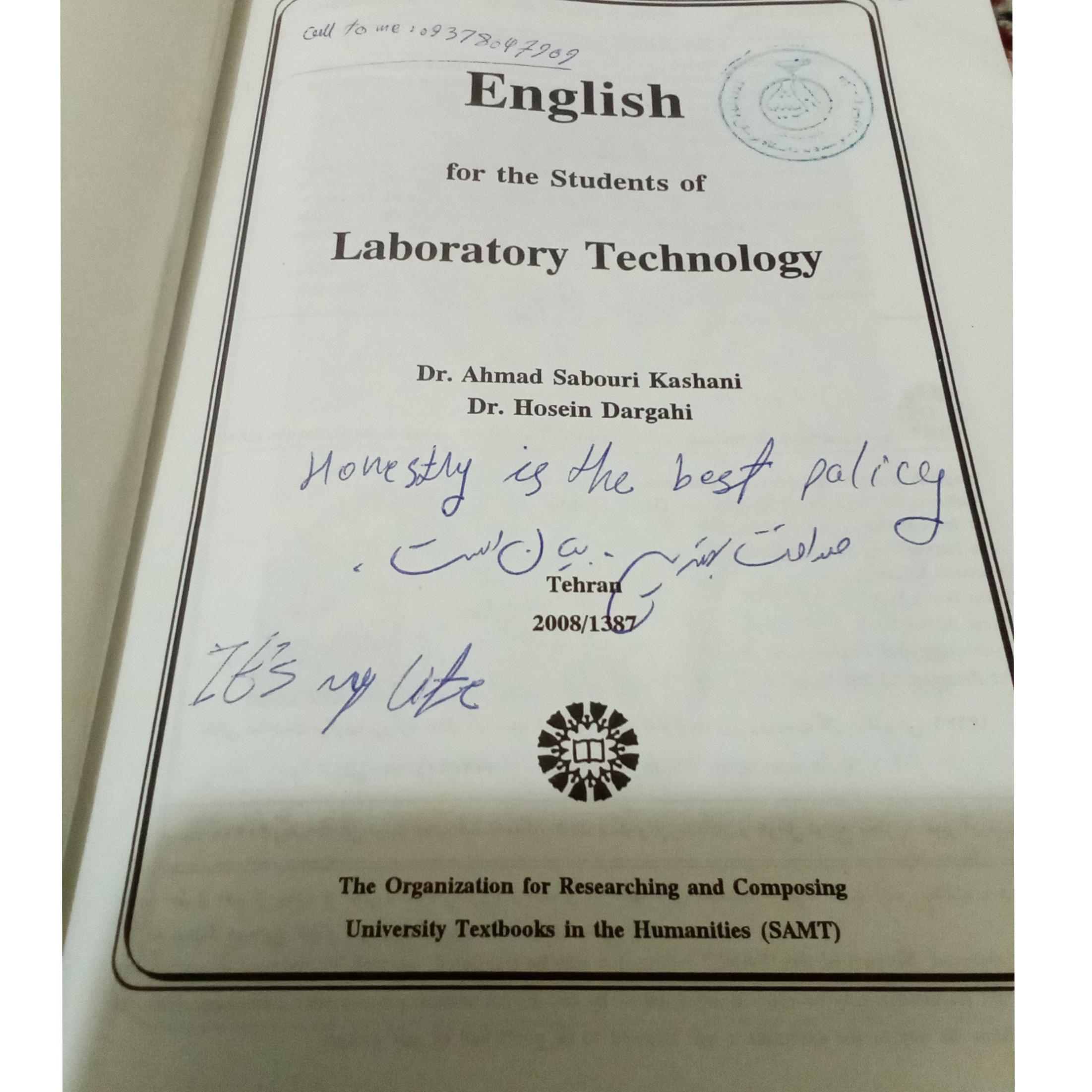 انگلیسی برای دانشجو علوم آزمایشگاهی چاپ پنجم