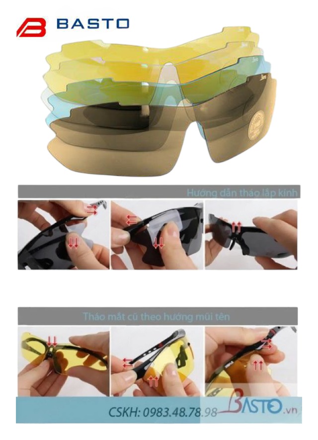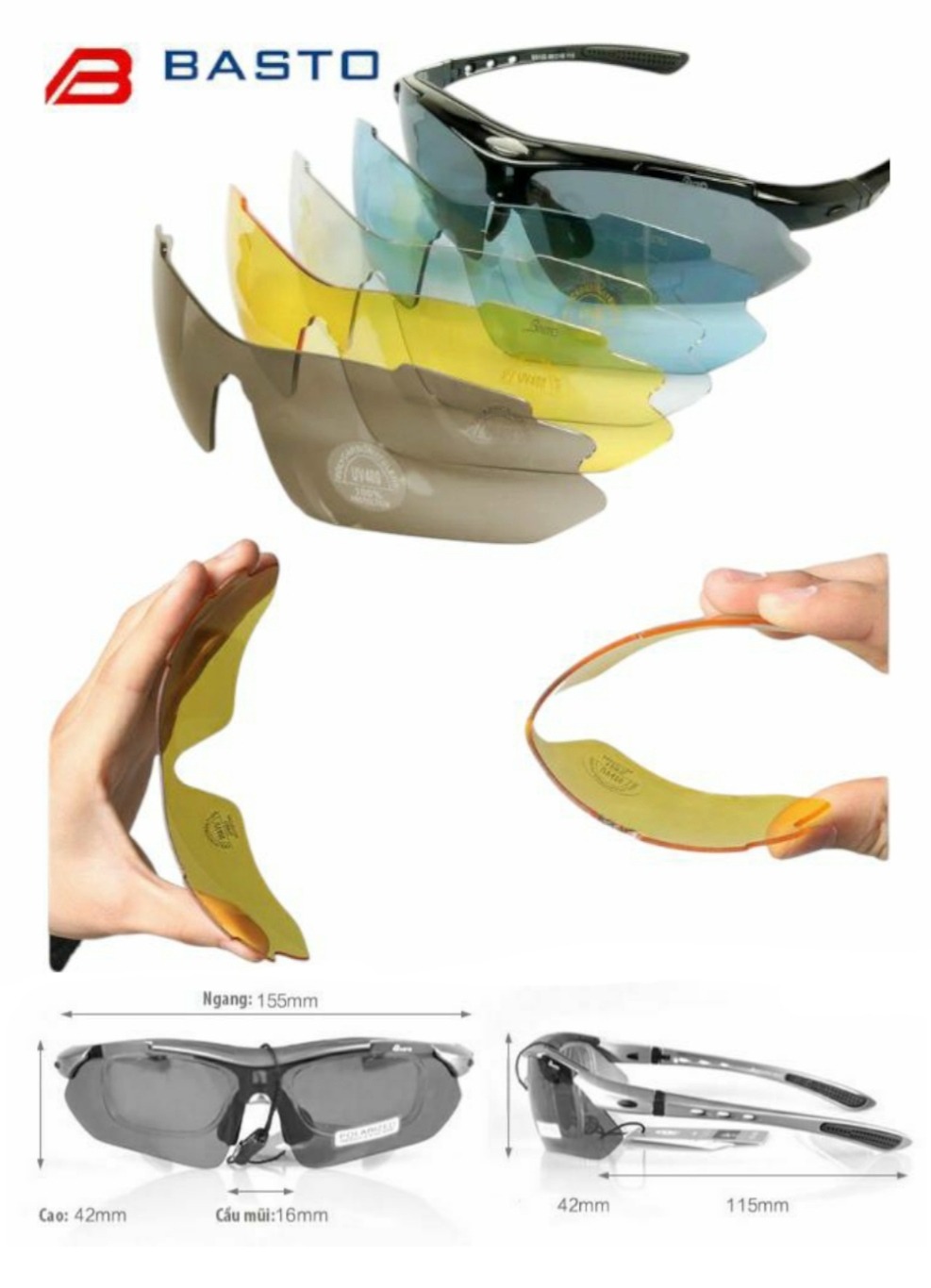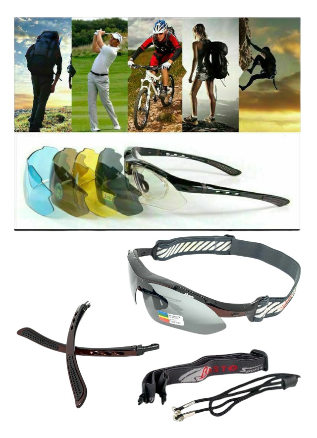 عینک ورزشی اورجینال برند BASTO مدل BS102 همراه با 5 لنز مختلف قابل تعویض برای استفاده در شرایط آب و هوایی مختلف با هر میزان نور، مناسب جهت انواع ورزش های فضای باز شامل ورزش های جاده ای(دوچرخه سواری و موتور سواری)، ورزش های ساحلی(والیبال، فوتبال ساحلی و...)، کوهنوردی(کوله گردی)، ماهیگیری، سوارکاری، تنیس، گلف، اسکیت، دویدن و پیاده روی.