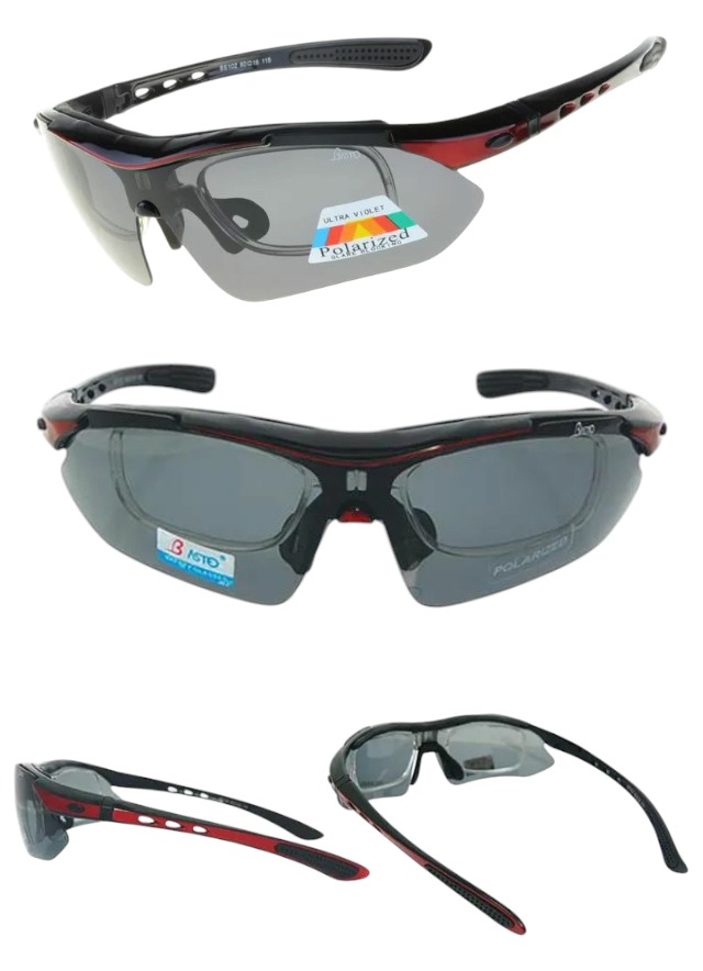 اقلام موجود در بسته: کیف اصلی زیپ دار مقاوم به ضربه به همراه گیره جهت اتصال به کوله، عینک به همراه قاب مخصوص لنز های طبی، 5 مدل لنز پولاریزه، کیسه عینک میکرو فایبر، بند گردنی، بند ایمنی کشی(هدبند) جهت بستن محکم عینک به سر، دستمال تنظیف مخصوص و دفترچه راهنما.
