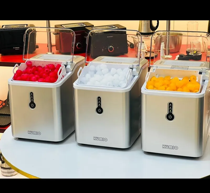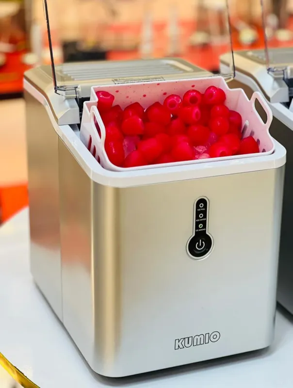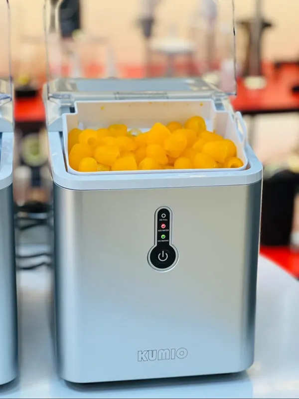 دستگاه یخ ساز KUMIO با ابعاد 8.98 x 12.6 x 11.69 اینچ و وزن تنها 16.98 پوند، حمل آن را آسان می کند و برای آشپزخانه، مهمانی، دفترکار، کافی شاپ ها ، کمپینگ، بار و غیره مناسب است.