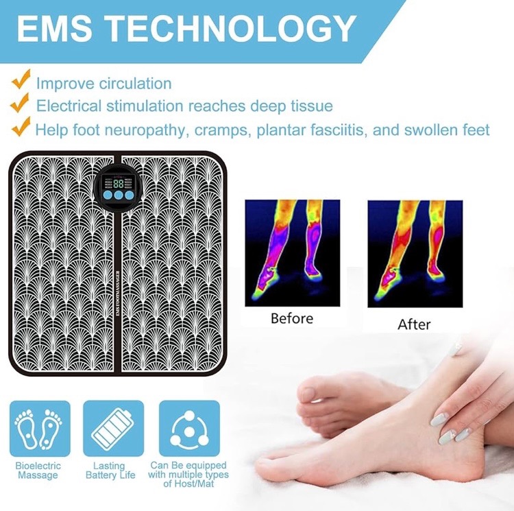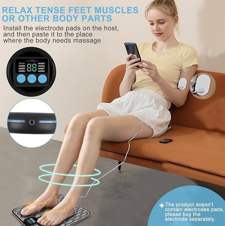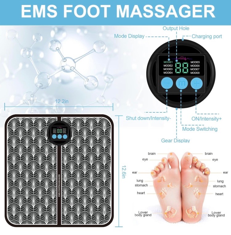 ماساژور پا که از درمان تحریک الکتریکی برای اعمال پالس های ریز جریان به عضلات عصبی عضلانی و بهبود گردش خون در پاها، کاهش ضعف عضلات پا و گرفتگی ساق پا، و تسکین درد و خستگی پاها و ساق پا استفاده می کند. . ماساژ پا برای گردش خون برای انواع پا و سایزهای مختلف پا مناسب است.