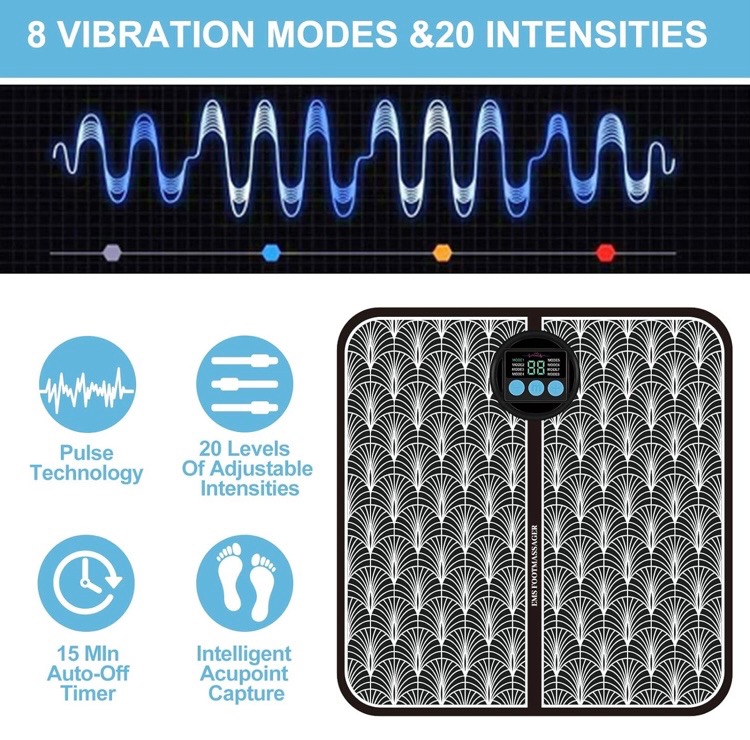 ماساژور قابل تنظیم پا دارای 8 حالت ماساژ و 20 سطح شدت است.