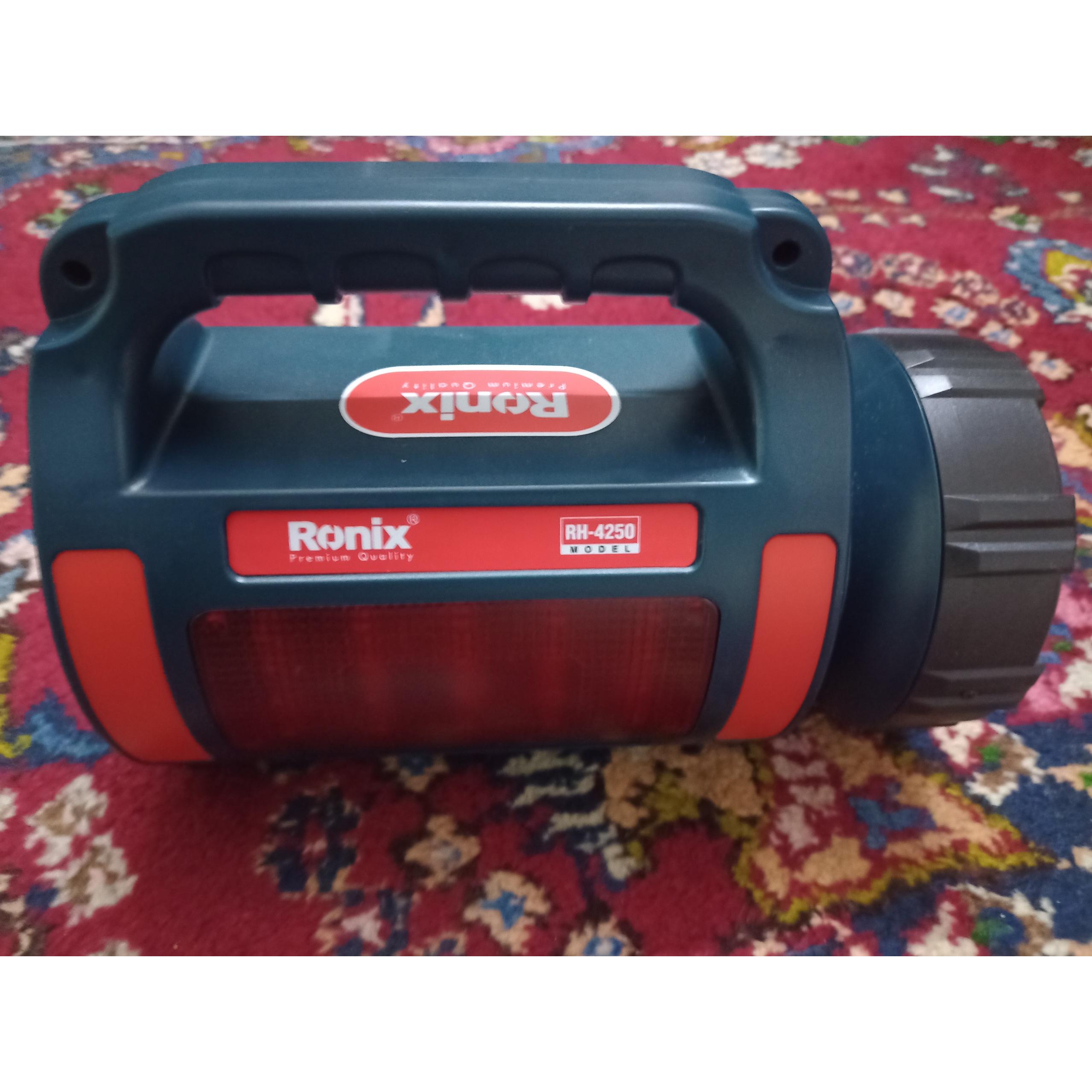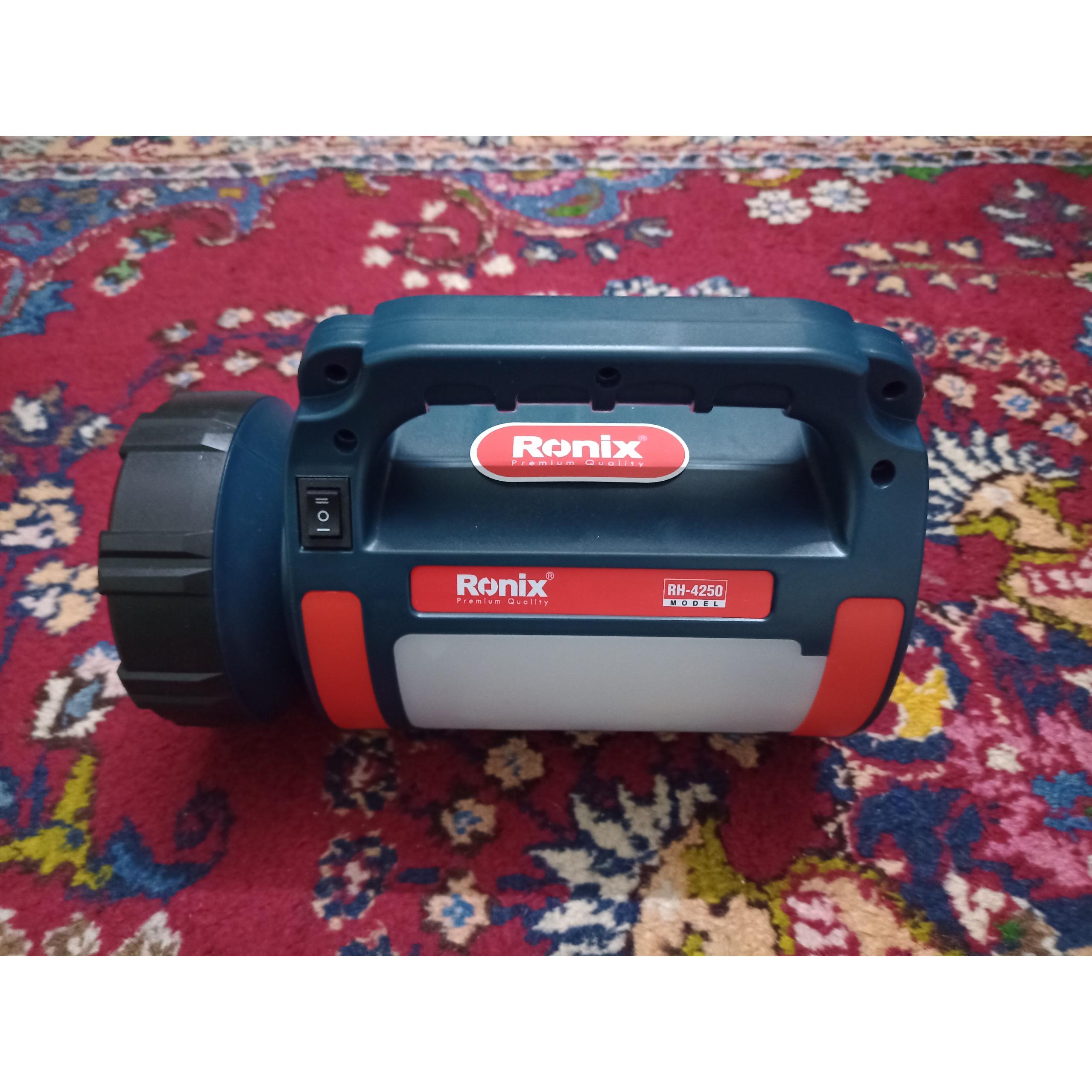نورافکن شکاری رونیکس مدل RH4250 قابل شارژ با باتری با توان 3600 میلی آمپر 3/7 ولت دارای نشانگر شارژ ضد آب از جنس ABS با وزن 720 گرم چراغ اصلی 280 الی 600 لومن شدت روشنایی و برد 1000 متر چراغ جانبی 50 الی 100 لومن به همراه بند پوشی برزنتی و کابل شارژ و شارژر دارای قابلیت استفاده به عنوان پاور بانک