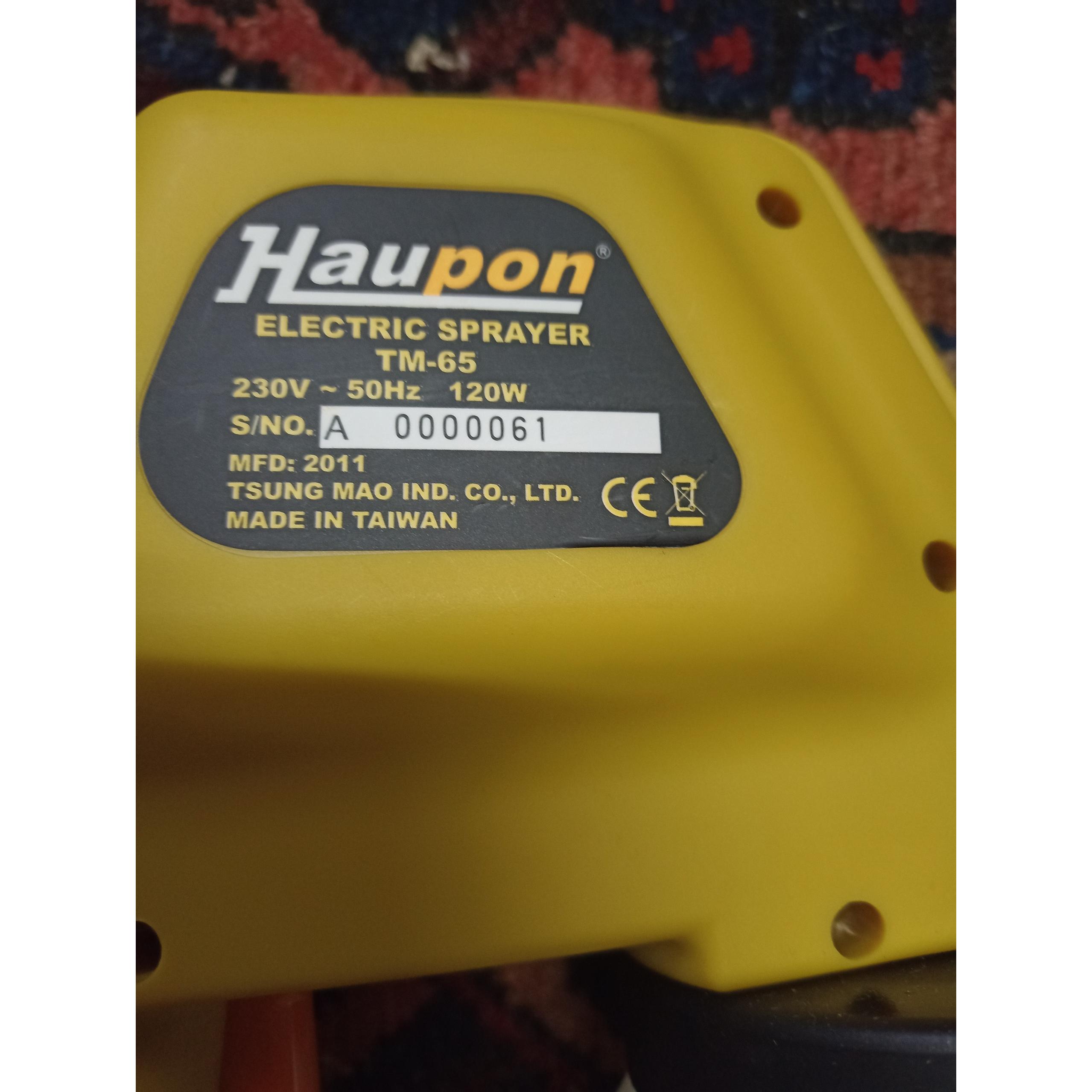 پیستوله برقی هائوپن مدل TM65 با توان 120 وات واقعی ساخت تایوان ظرفیت خروجی 360 میلی لیتر بر دقیقه ظرفیت مخزن 1000 میلی لیتربه همراه شیر دریچهو لوله مکش دو لایه و وزن 1900گرم