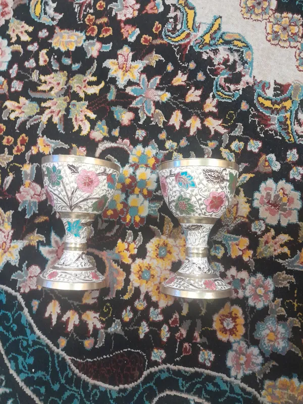 همراه با دو عدد پیاله که پیالهها دقیقاً ست گل دان نیستند ولی بسیار شبیهند و در ظاهر معلوم نمیشه