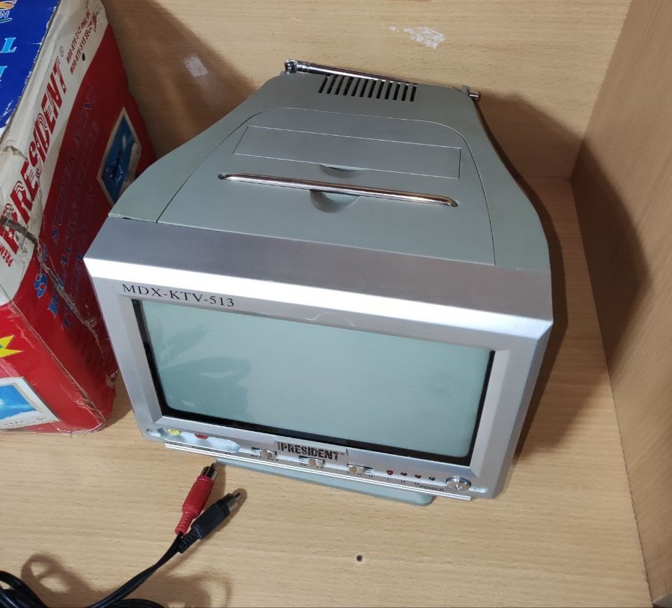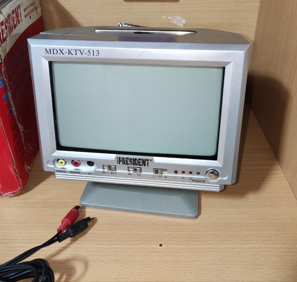 تلویزیون نقلی مسافرتی 8اینچ سیاه سفید درحدنو دارای 2 ورودی خ صدا وتصویر برقی و میشه با آداپتور و فندکی ماشین استفاده کرد پایه چرخشی بسیار تمیز و کارکرد سالم طبق تصاویر همراه کارتن و فیش صداوتصویر مارک پرزیدنت که داخل لیست نبود مجبور سونی انتخاب شده