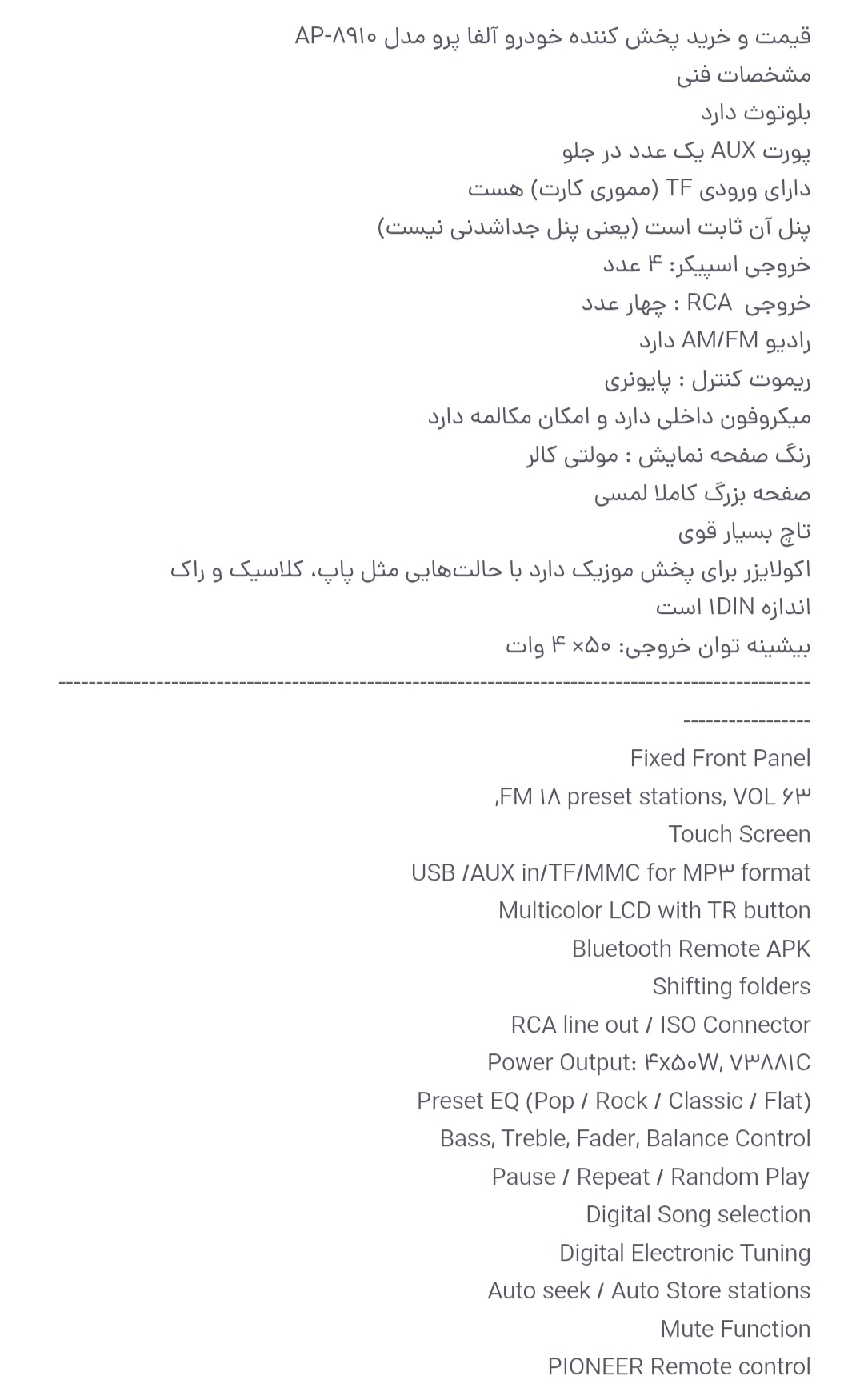 پخش کننده خودروalfa proمدلAP-8910 فول آپشنال