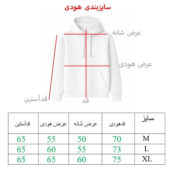 سایز XL :قد هودی 75 / عرض 65 /عرض شانه 60 / قد استین 65