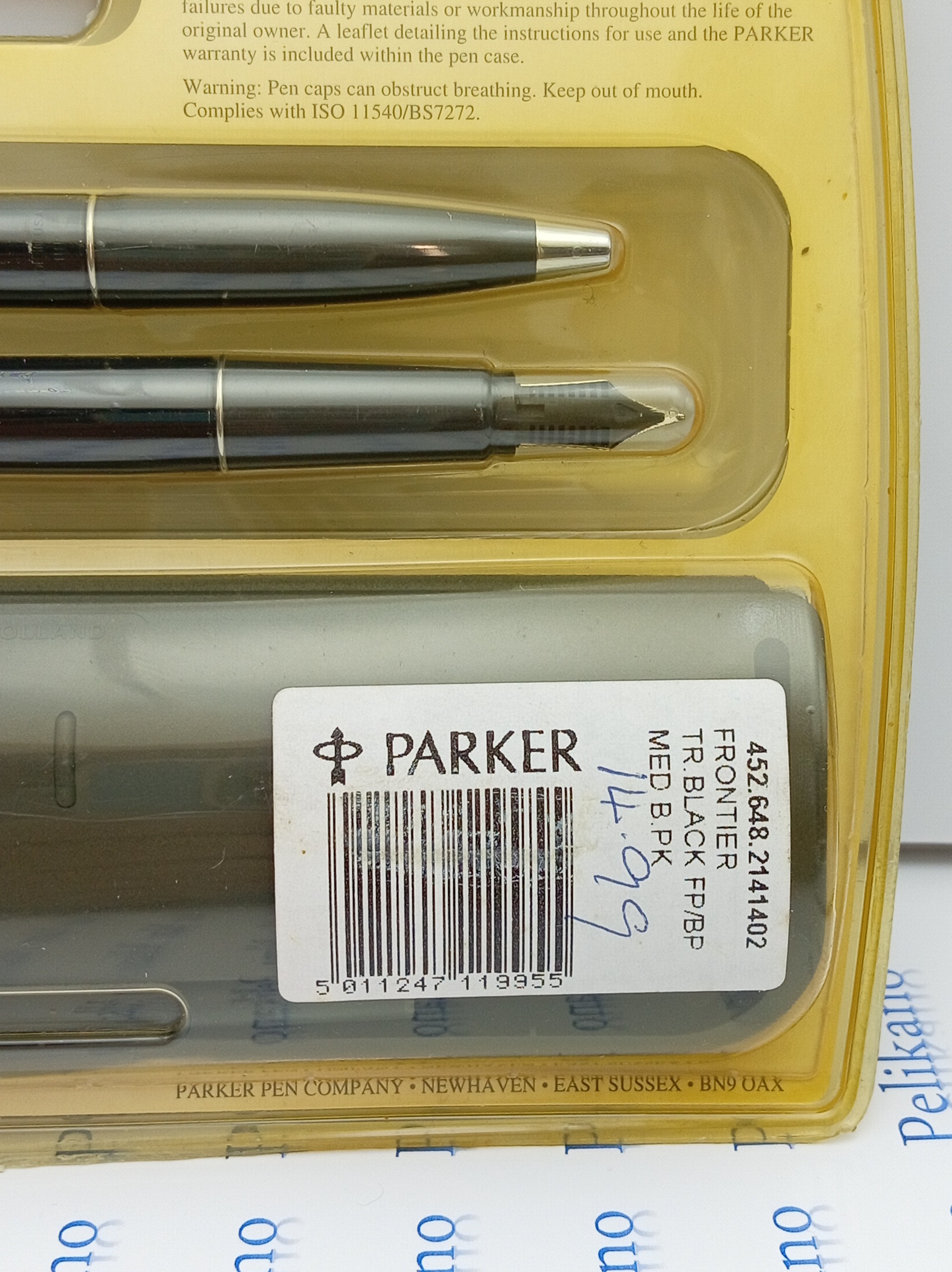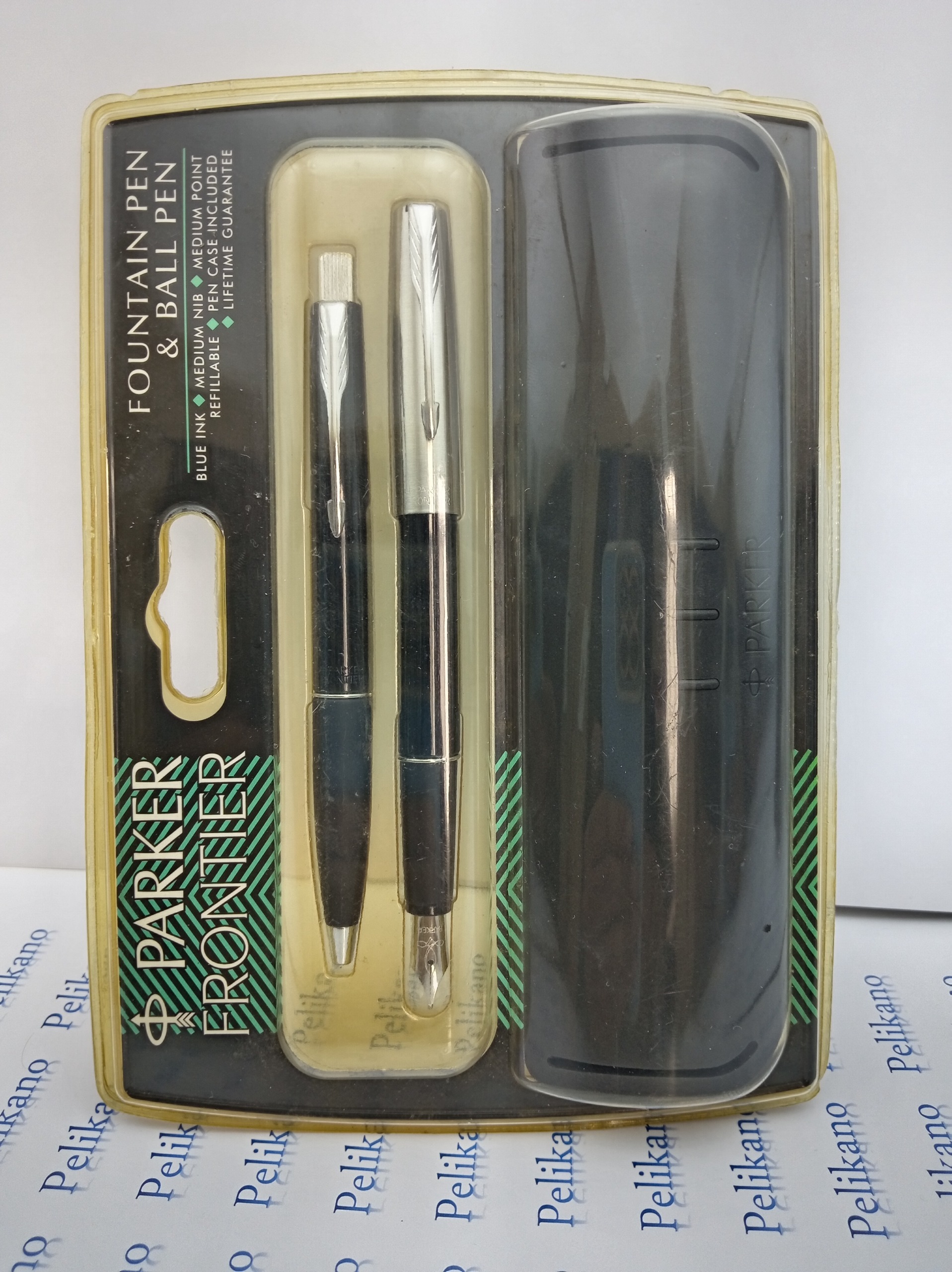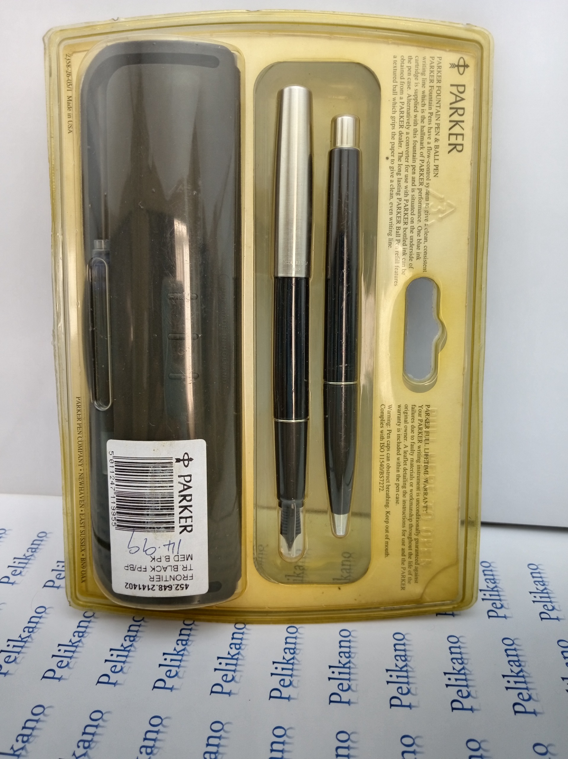 این ست خودنویس و خودکار پارکر فرانتیر آمریکا ، به دلیل حفظ پلمپ اصلی در طی سالیان دراز ، نایاب و کم نظیر در بازار جهانی و کاملا کلکسیونی و ارزشمند است. لازم به ذکر است کالا محصول کشور امریکا و توزیع شده در بریتانیای کبیر با برچسب بارکد پادشاهی بریتانیا است که هنوز حتی برچسب بریتانیا روی پلمپ کالا خوانا و مشهود است. چون پلمپ است معلوم نیست پمپ دارد یا نه ...به احتمال زیاد بدون پمپ است. با سپاس صرفا نظر عالی پذیرفته می شود.