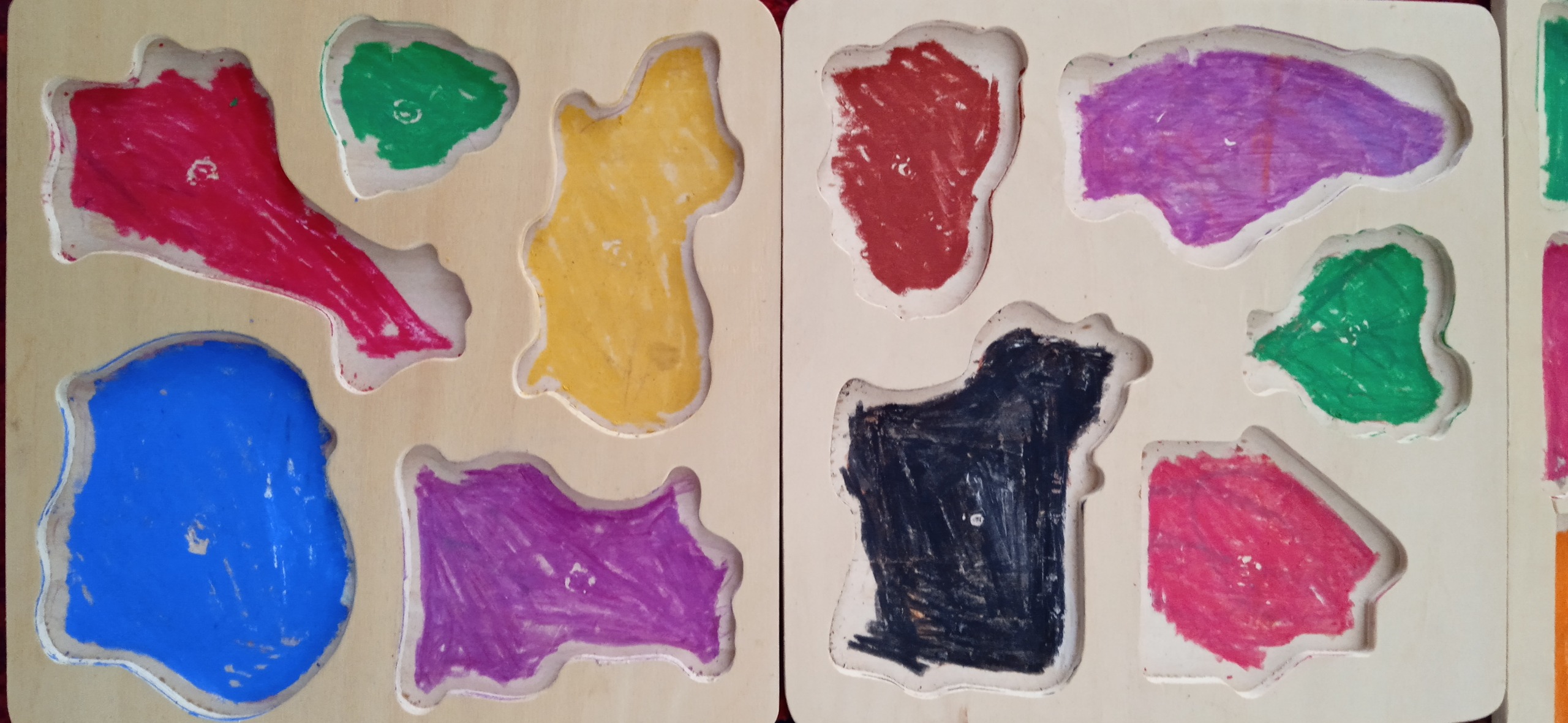 داخل هر شکل روی صفحه اصلی با مداد شمعی رنگ شده است