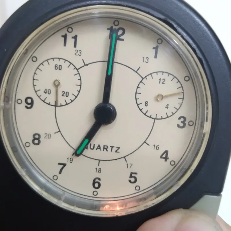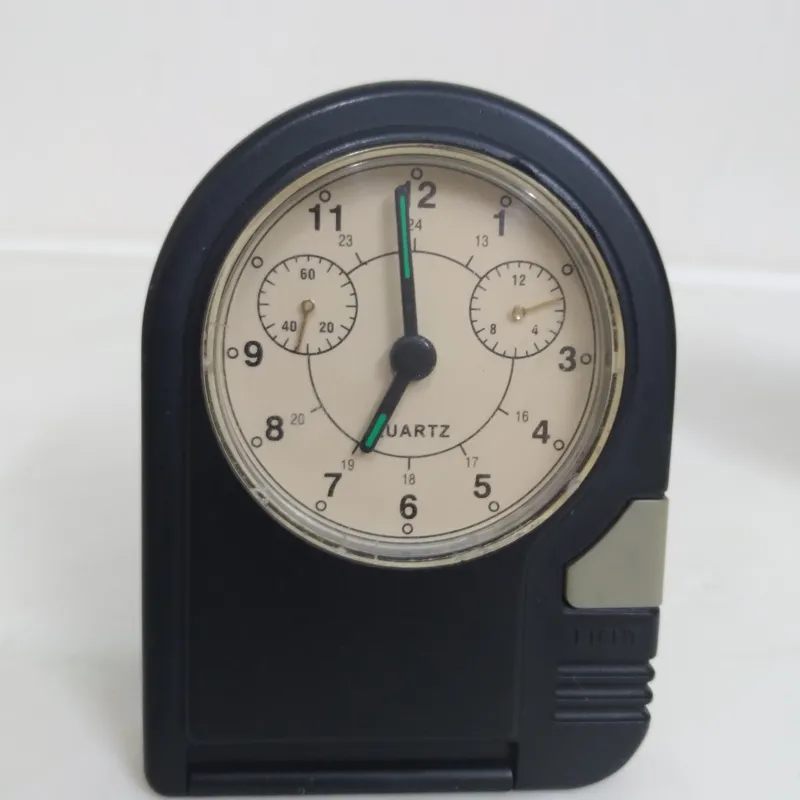 ساعت رومیزی کوارتز تاشو سه موتوره بسیار زیبا و آنتیک روی صفحه علاوه بر عقربه های ساعت دو عدد عقربه کوچک هم دارد که یکی ثانیه کرد است و یکی برای تنظیم زنگ