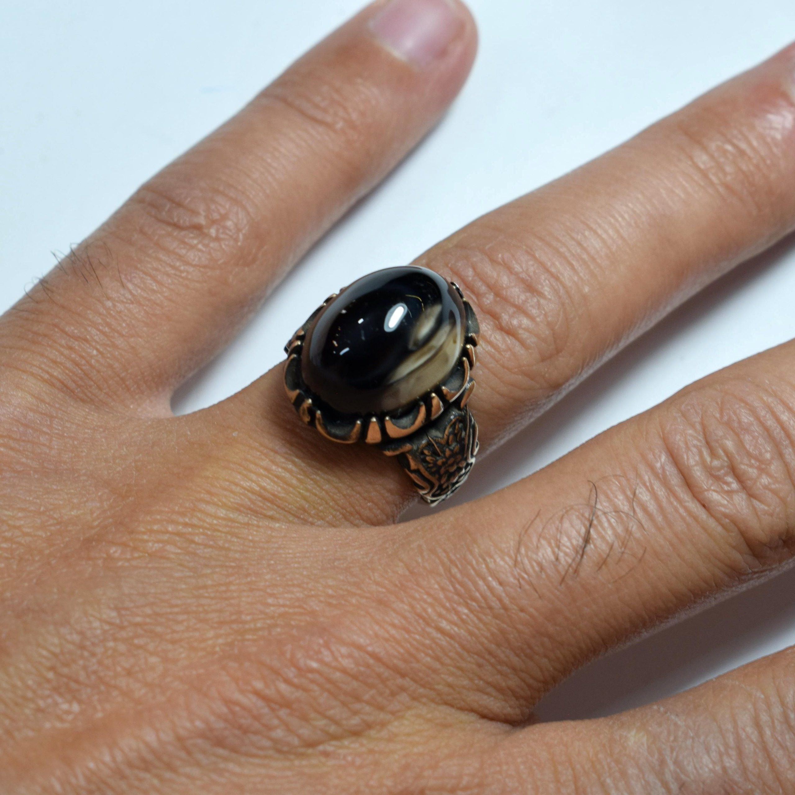 انگشتر عقیق بابا قوری مشکی معدنی خاص و طبیعی درجه یک
